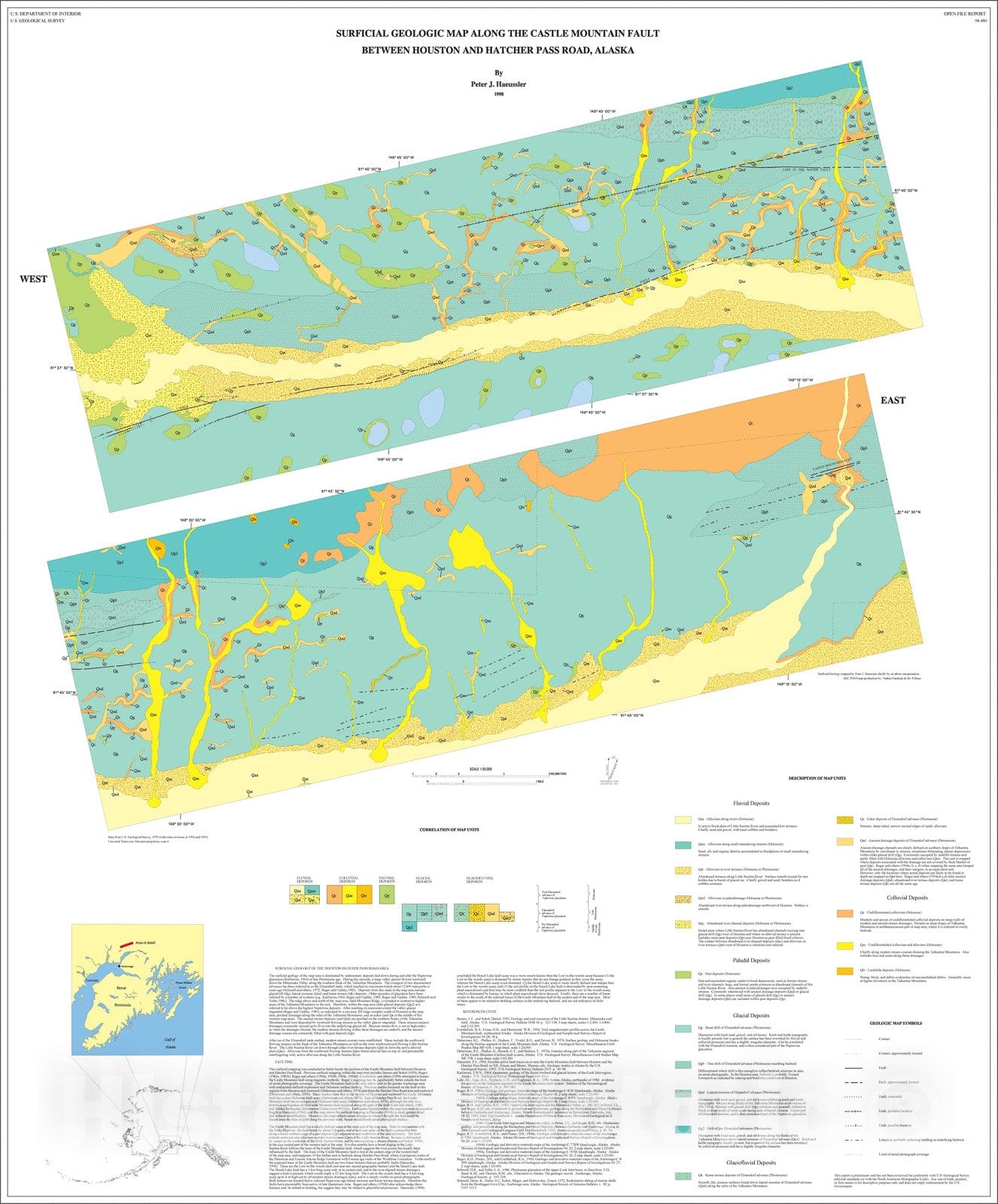 Surficial geologic map along the Castle Mountain fault between Houston and Hatcher Pass Road, Alaska
