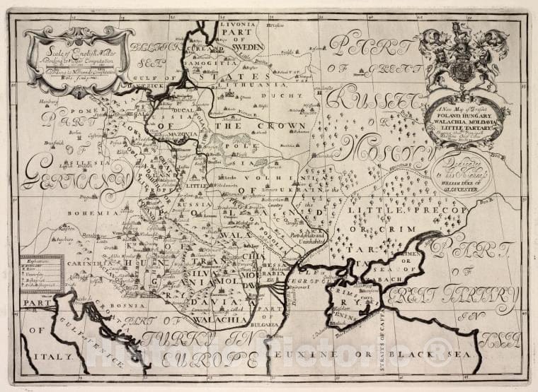 Historic Map - 1700 England, A New Of Present Poland, Hungary, Walachia, Moldavia, Little Tartary, Shewing Their Principal Divisions