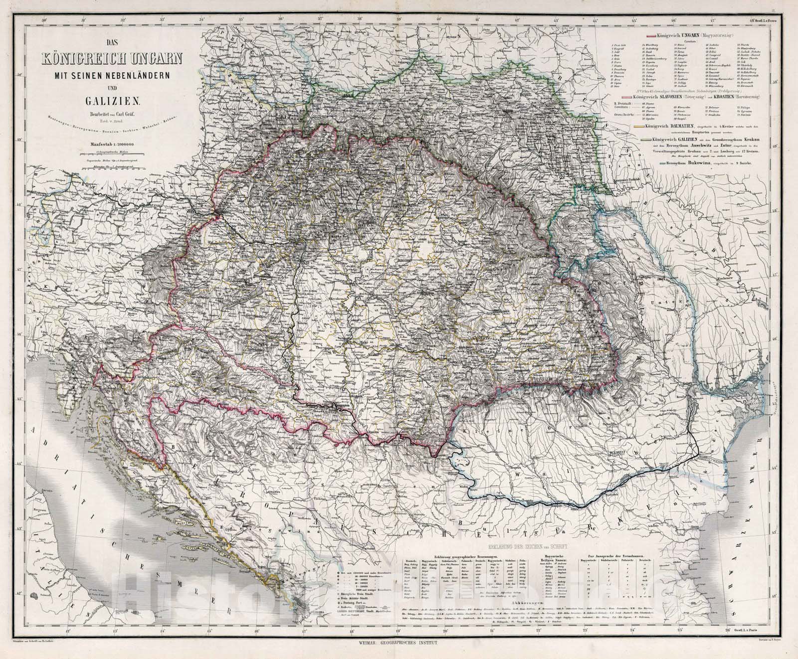 Historic Map : 1879 Kingdom of Hungary, adjacent Countries and Galicia. - Vintage Wall Art