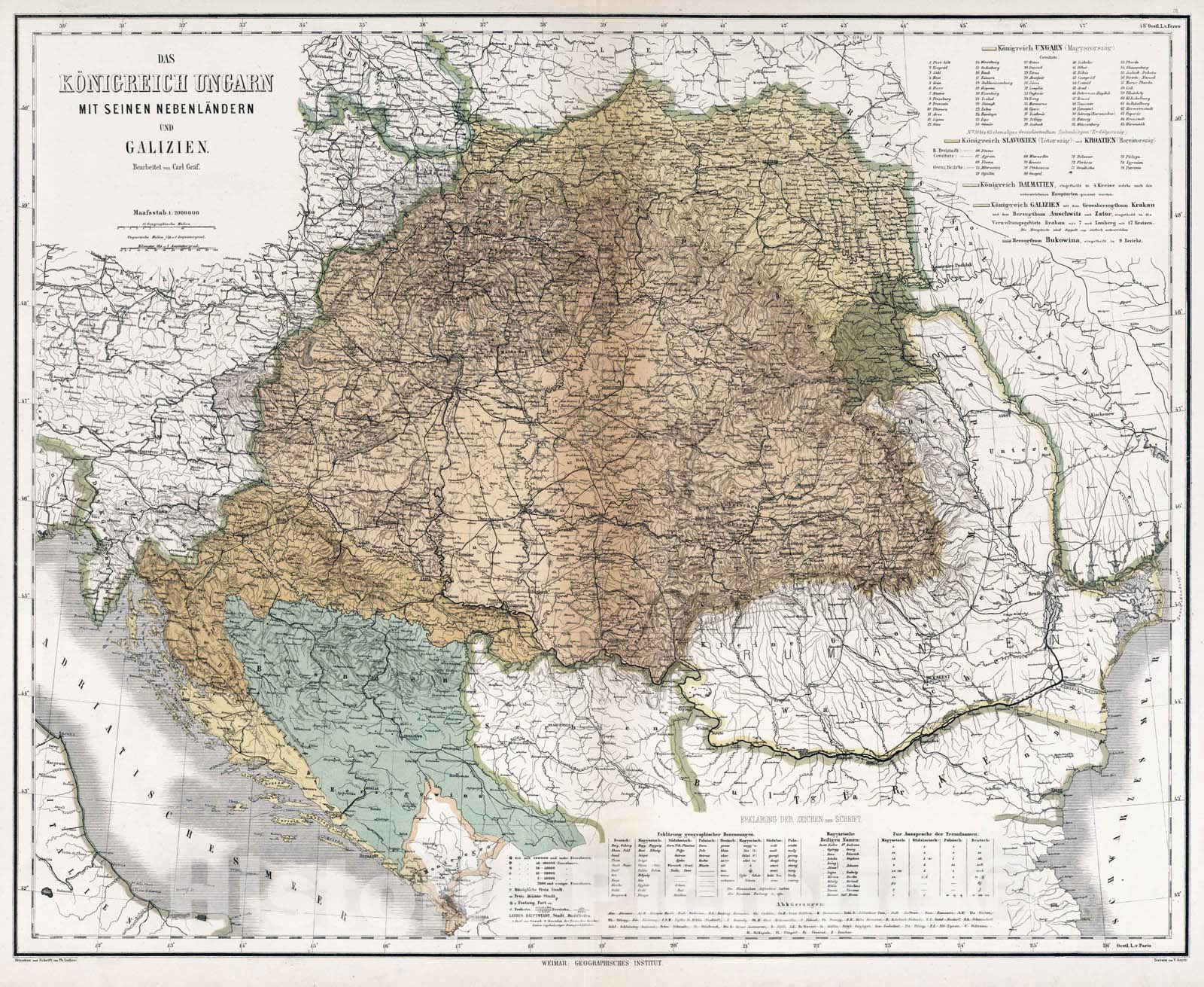 1886 Kingdom of Hungary, adjacent Countries and Galicia.