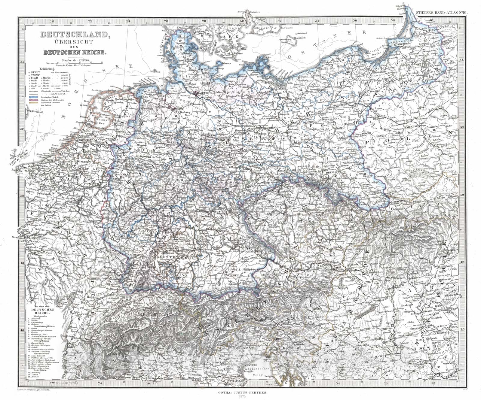 Historic Map : Austria; Germany; Hungary; Poland, 1873 Deutschland Ubersicht des Deutschen Reichs. (Germany and German Reich). , Vintage Wall Art