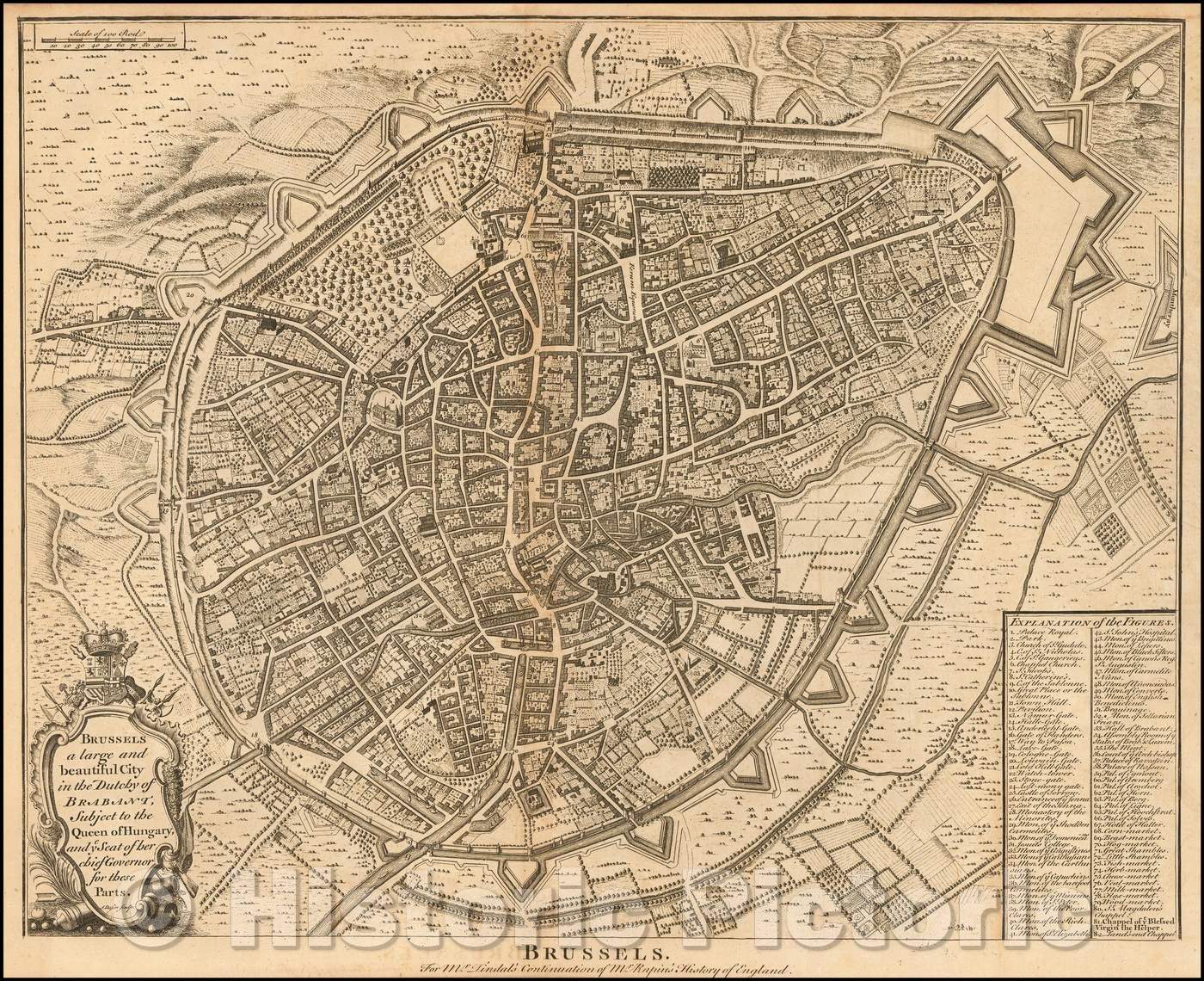 Historic Map - Brussels a large and beautiful City in the Dutchy of Brabant, Subject to the Queen of Hungary, 1746, Paul de Rapin de Thoyras - Vintage Wall Art