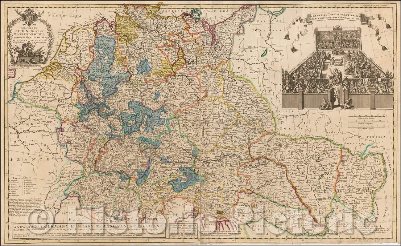 Historic Map - Germany, Hungary, Transilvania & the Suisse Cantons, with Many Remarks Not Extant in any Map, 1712, Herman Moll v2