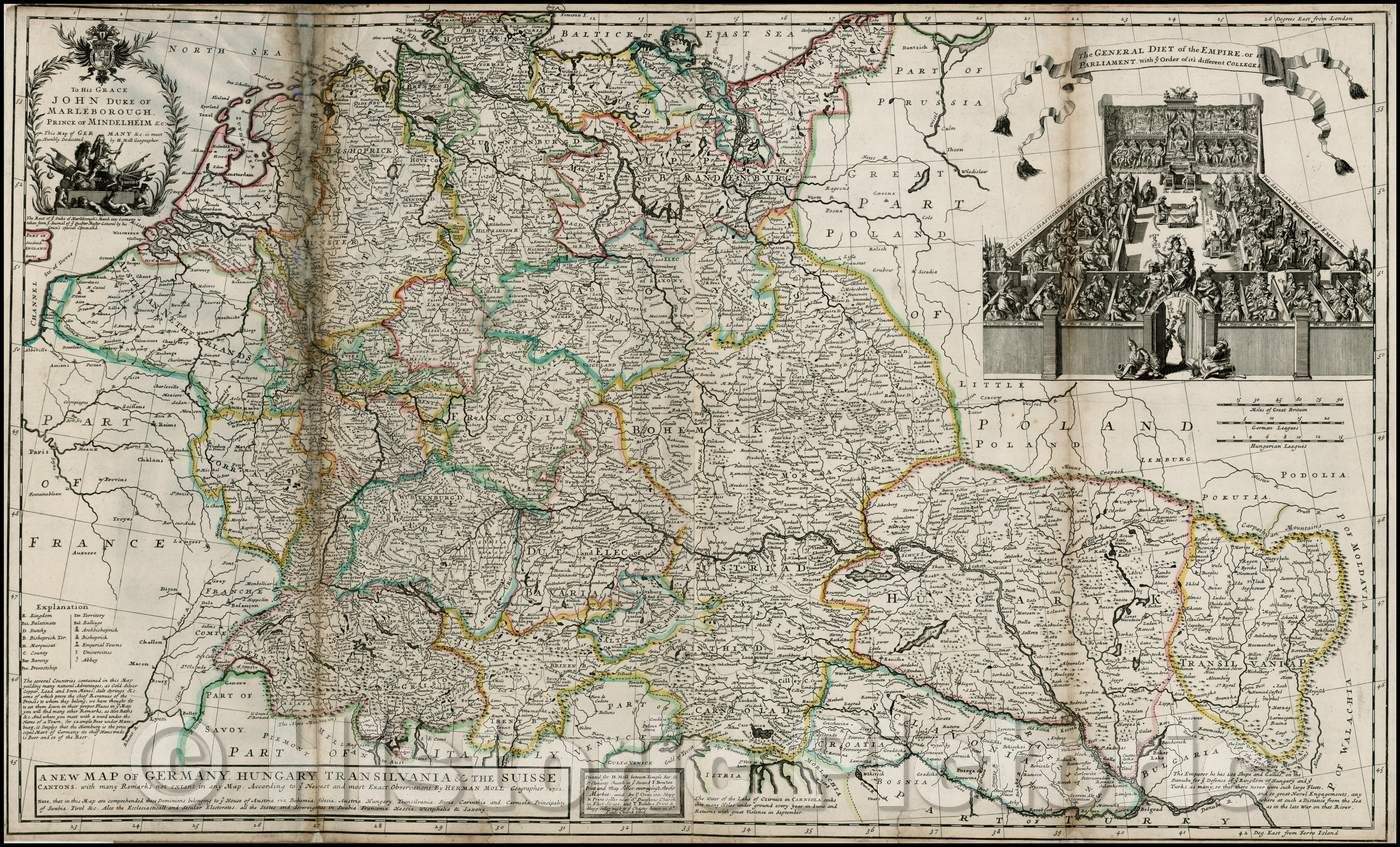 Historic Map - Germany, Hungary, Transilvania & the Suisse Cantons, with Many Remarks Not Extant in any Map, 1712, Herman Moll v1