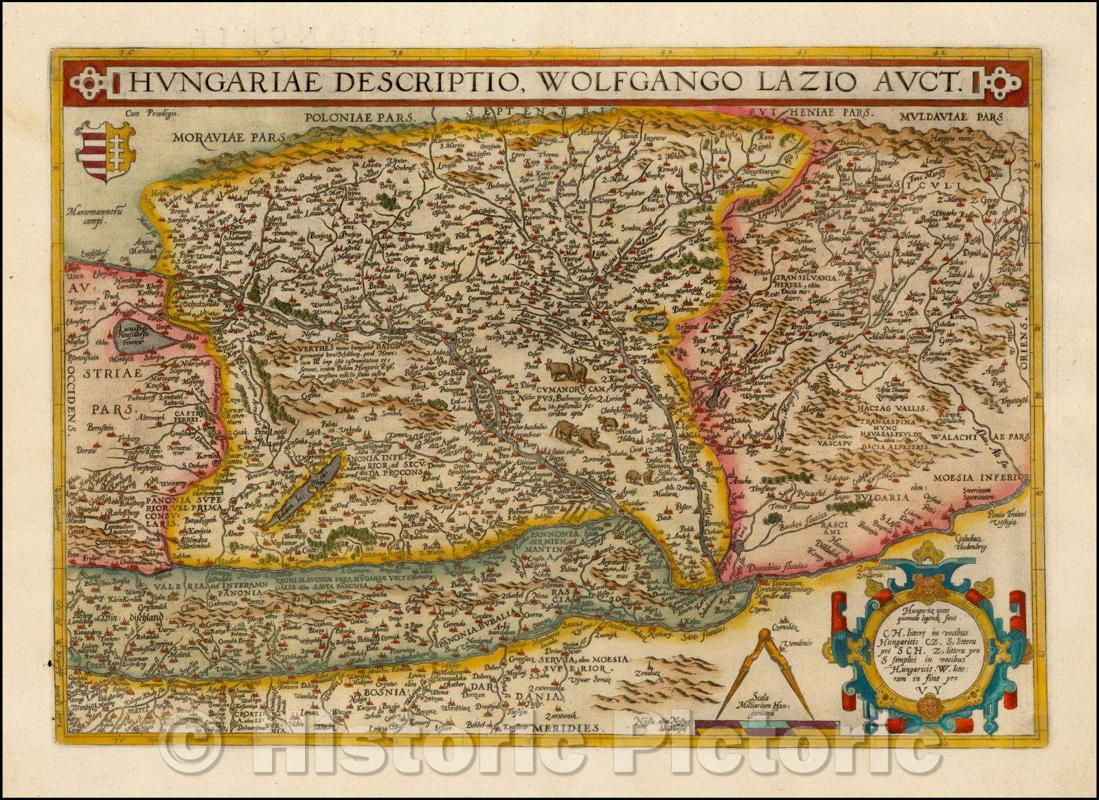 Historic Map - Hungariae Descriptio, Wolfgango Lazio Auct. / Ortelius' Map of Hungary and surrounding Regions, 1574, Abraham Ortelius - Vintage Wall Art