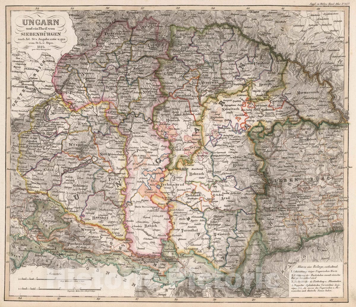Hungary, 1825 Ungarn und ein Theil von Siebenburgen , Vintage Wall Art