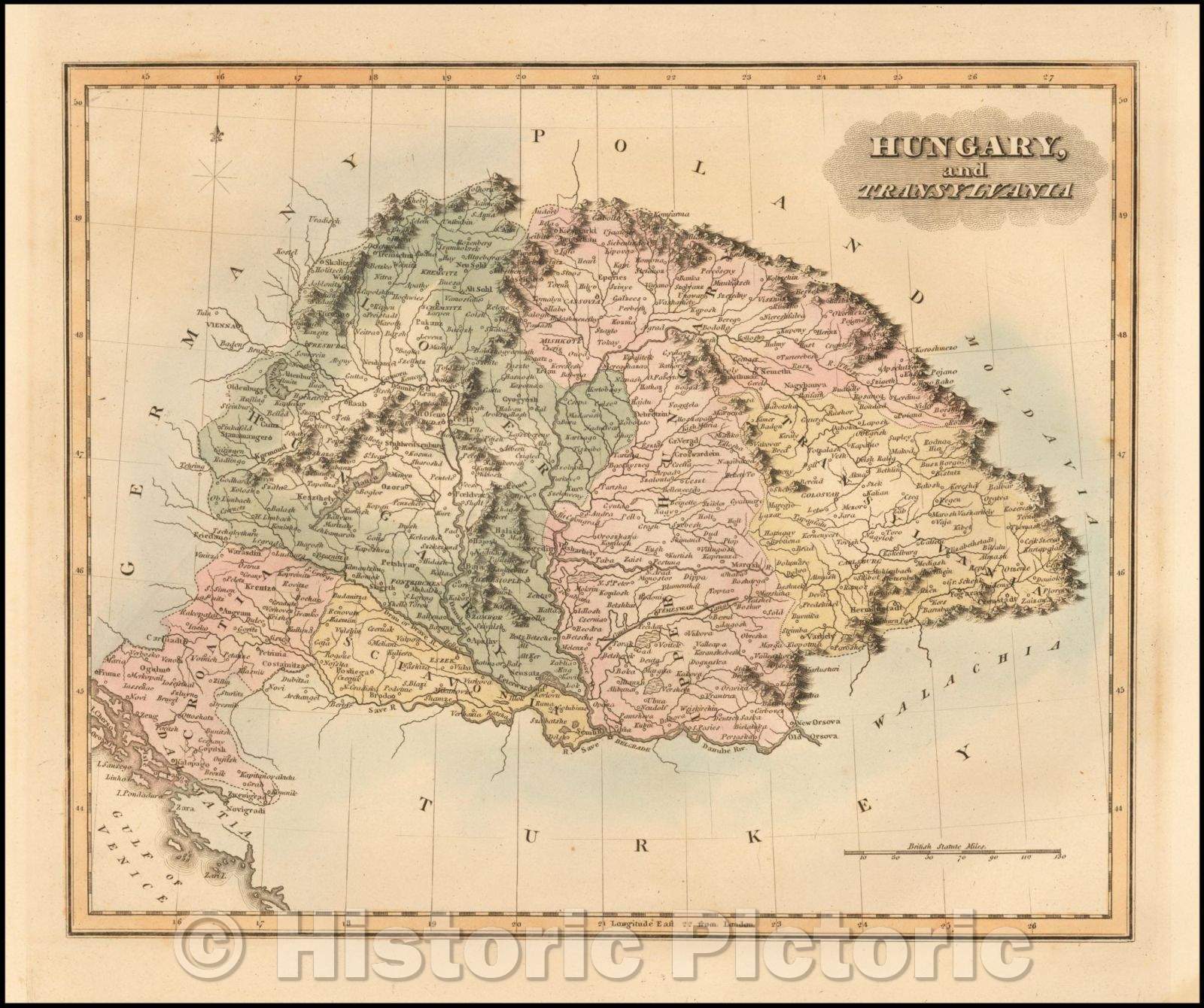 • .Historic Map - Hungary and Transylvania, 1823, Fielding Lucas Jr. v2