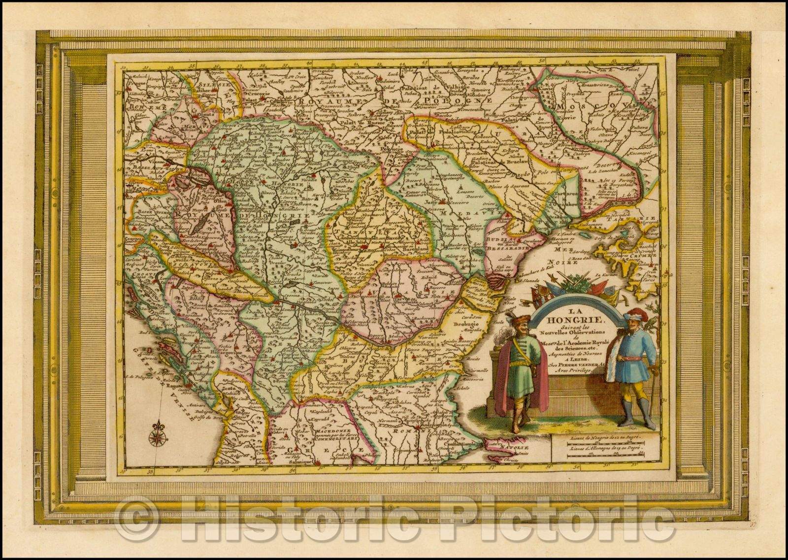• .Historic Map - La Hongrie Suivant les Nouvelles Observations/Vander Aa's Map of Hungary, 1700, Pieter van der Aa - Vintage Wall Art