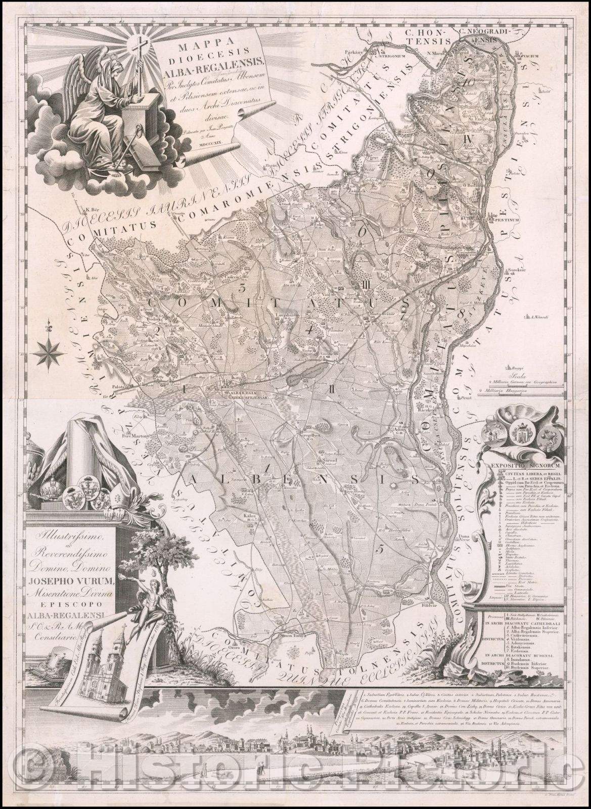 Historic Map - Mappa Dioecesis Alba-Regalensis, Per Inclytos Comitatus Albensem et Pilsiensem/Map of Albensis, Hungary by Janor Pongratz, 1819 - Vintage Wall Art