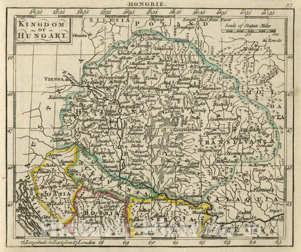 A New General and Universal Atlas Containing Forty Five Maps by Andrew Dury. Engraved by Mr. Kitchin & Others. Kingdom of Hungary, 1763 AtlasVintage Wall Art