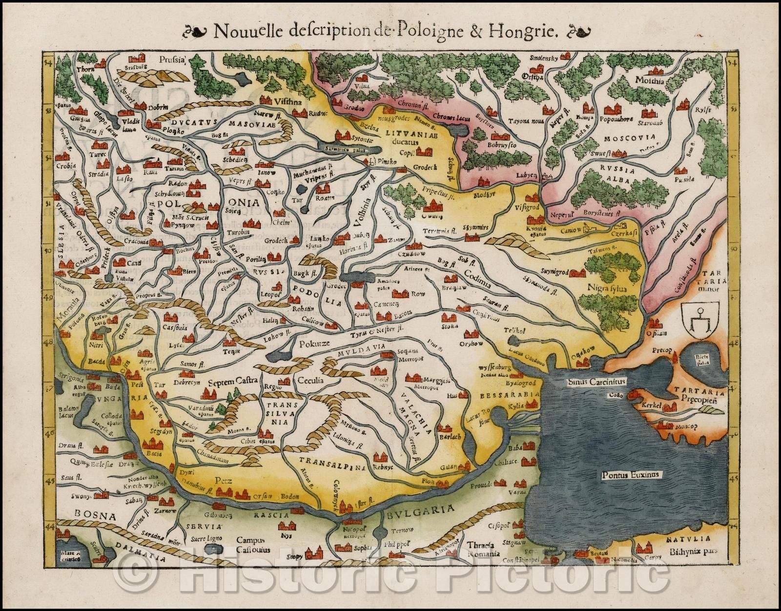 Nouvelle description de Poloigne & Hongrie/Hungary New Poloigne & description, 1552, Sebastian M?nster