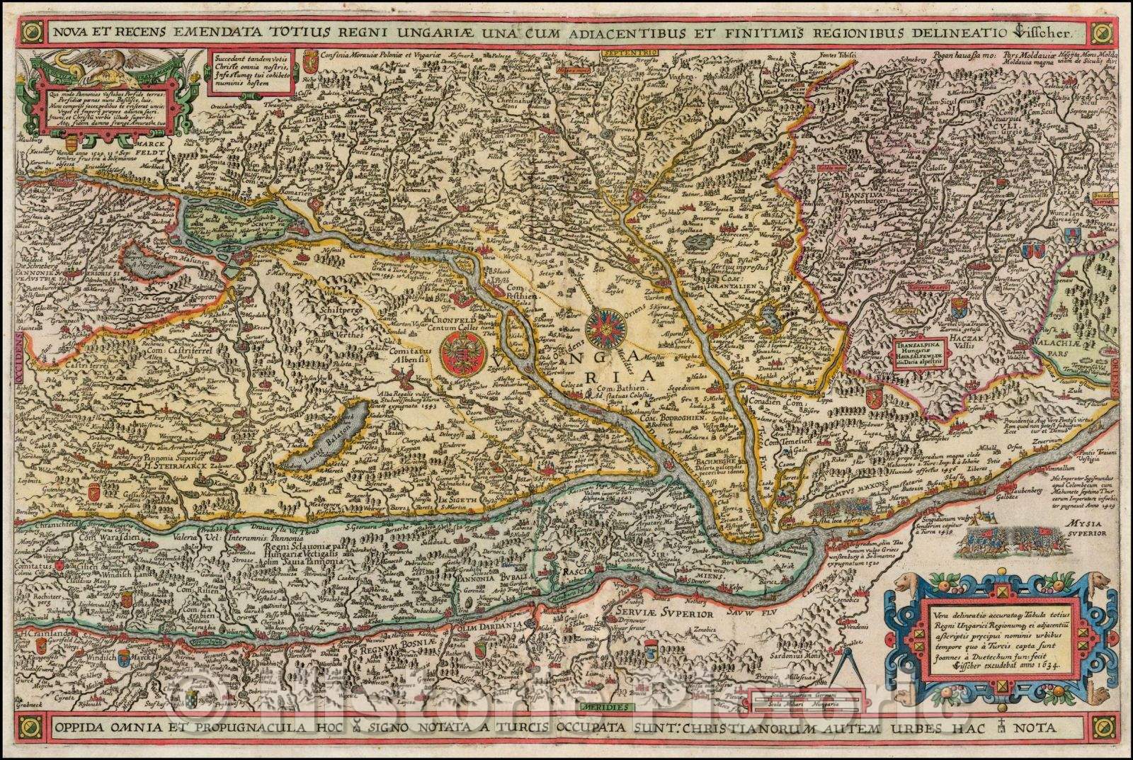 Historic Map - Nova et Recens Emendata Totius Regni Ungariae una cum Adiacentibus et Fini :: Kingdom of Hungary together with the adjacent, 1634 - Vintage Wall Art