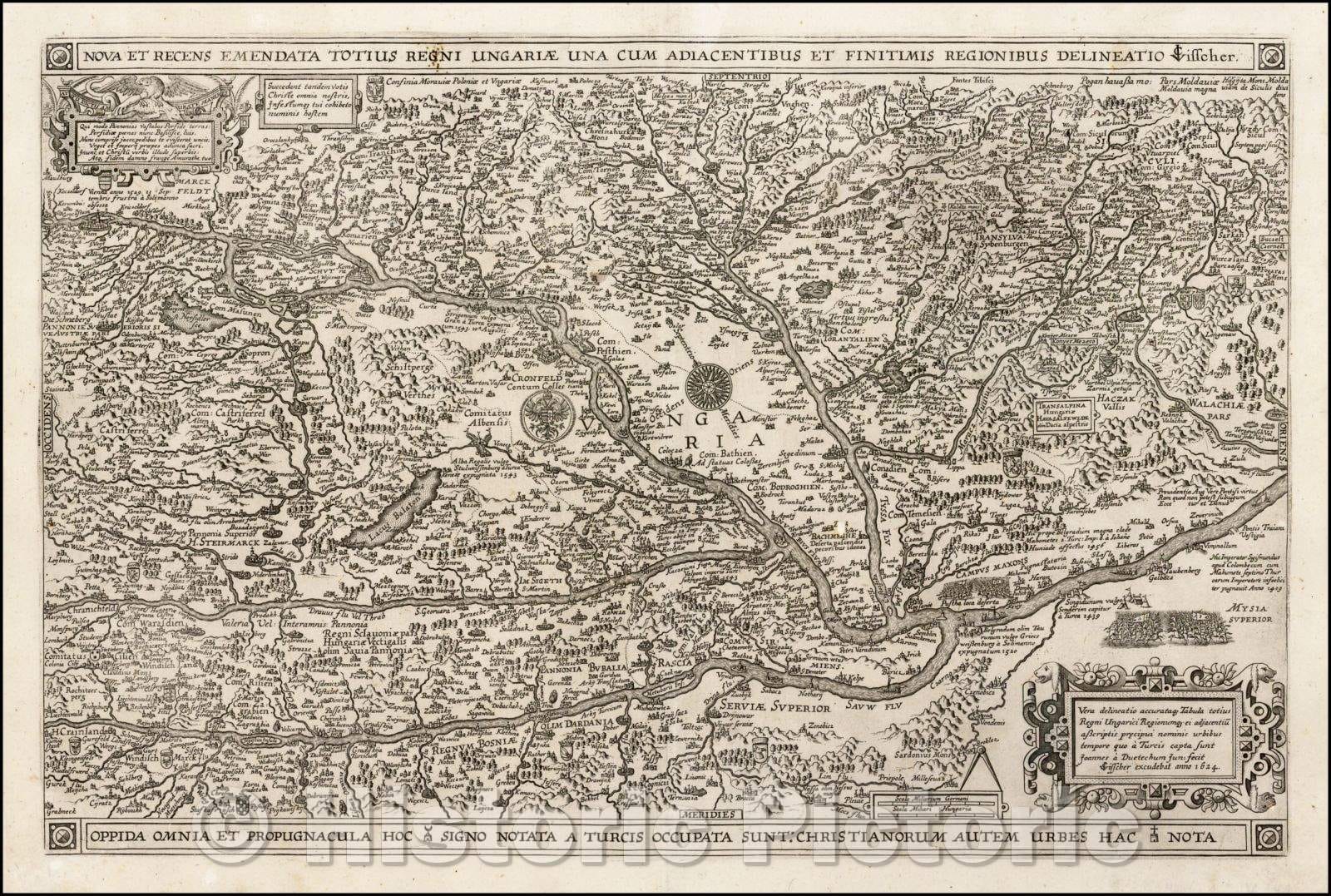• .Historic Map - Nova et Recens Emendata Totius Regni Ungariae una cum Adiacentibus et Fini :: Kingdom of Hungary together with the adjacent, 1624 - Vintage Wall Art