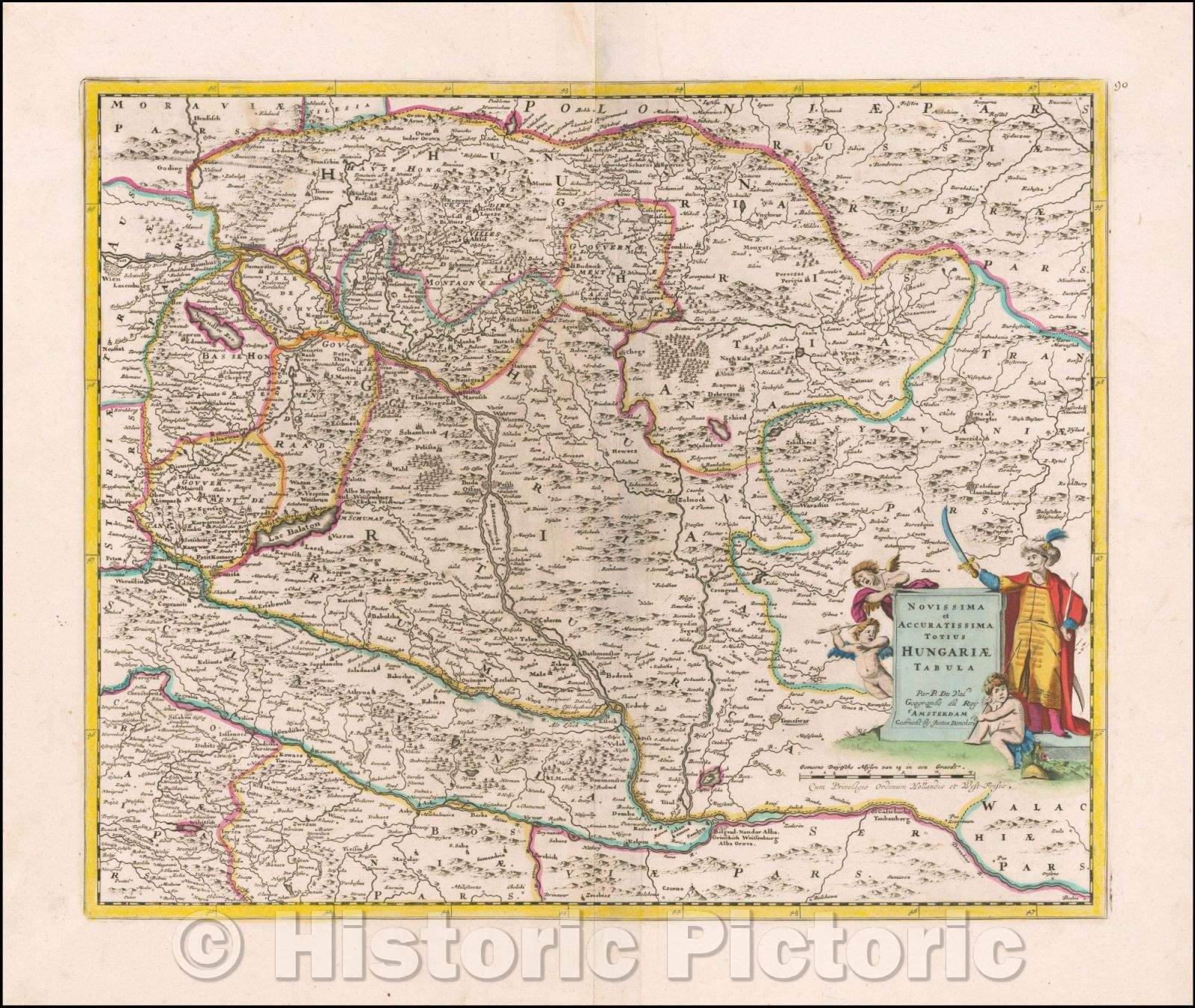 Historic Map - Novissima et Accuratissima Totius Hungariae Tabula Par P. Du Val/Justus Danckerts Map of Hungary, based upon an Map by Pierre Du Val, 1690 - Vintage Wall Art