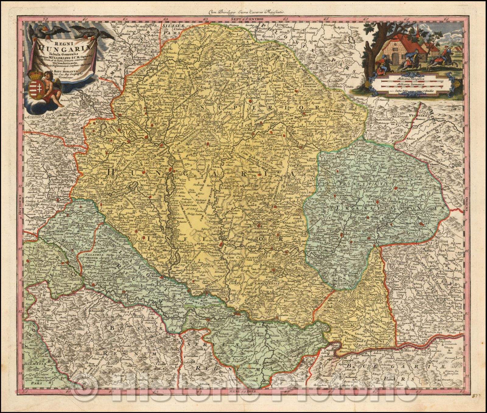 Historic Map - Regni Hungariae Tabula Generalis archetypo Mulleriano SCM Capit et Ingr :: Hungary General Mulleriano SCM model and enter the landlord, 1720 - Vintage Wall Art