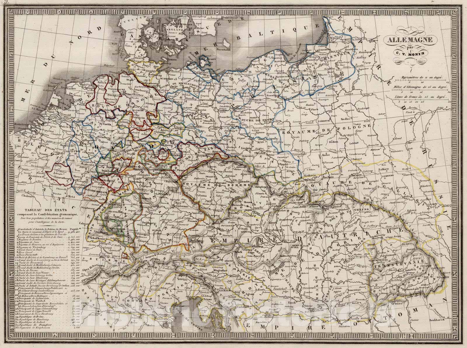 Historic Wall Map : Germany; Austria; Poland; Hungary, 1839 Allemagne. , Vintage Wall Art