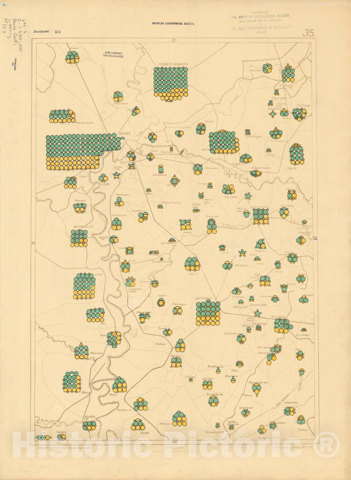 • .Historic Map : The Communes of Hungary showing the persons able to read and write 1918 27, Vintage Reproduction