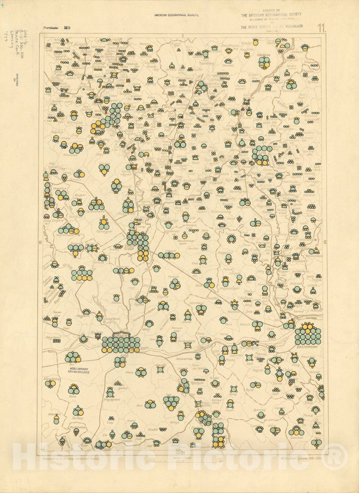 • .Map : The Communes of Hungary showing the persons able to read and write 1918 2, Antique Vintage Reproduction