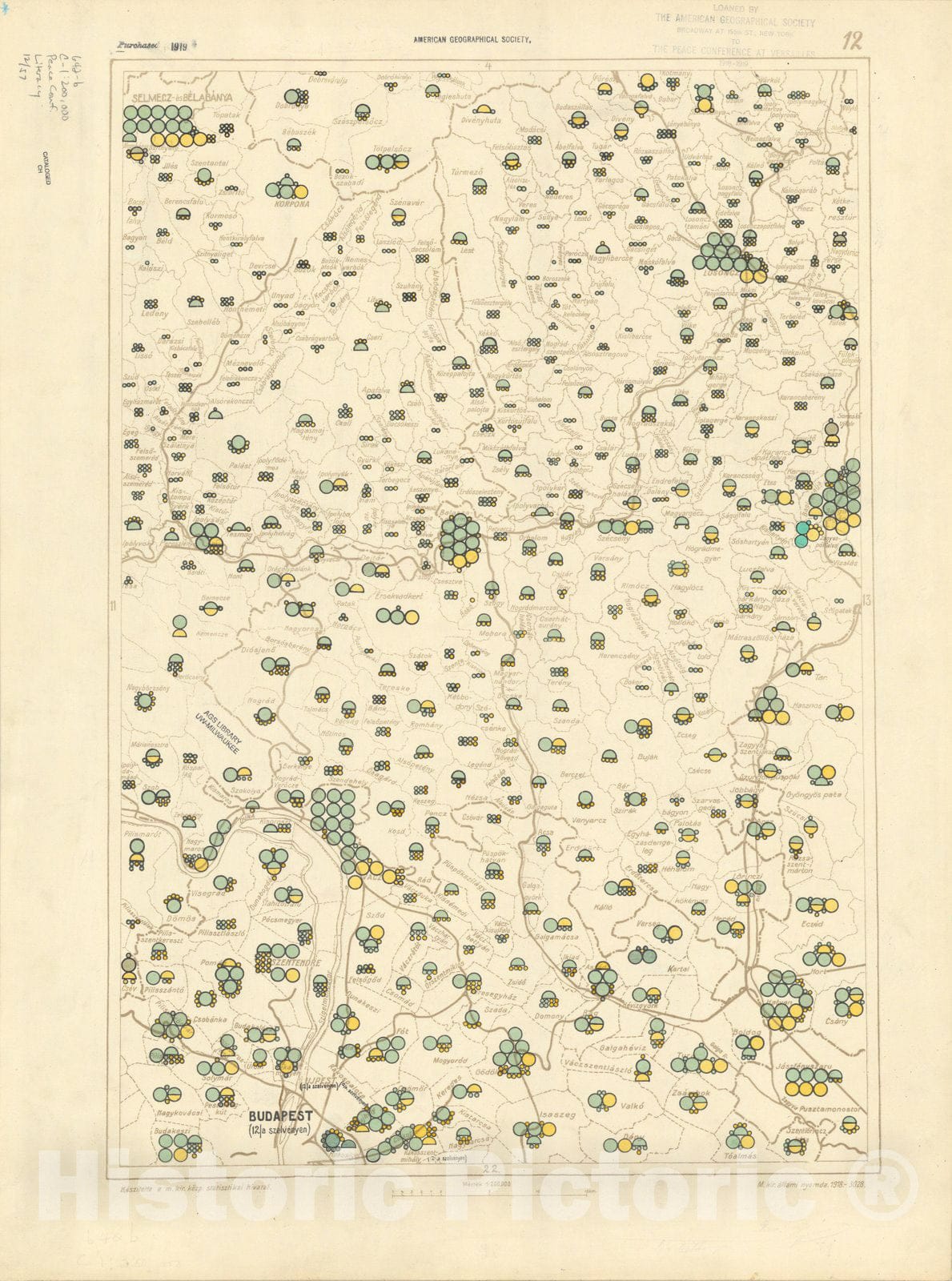 • Map : The Communes of Hungary showing the persons able to read and write 1918 3, Antique Vintage Reproduction