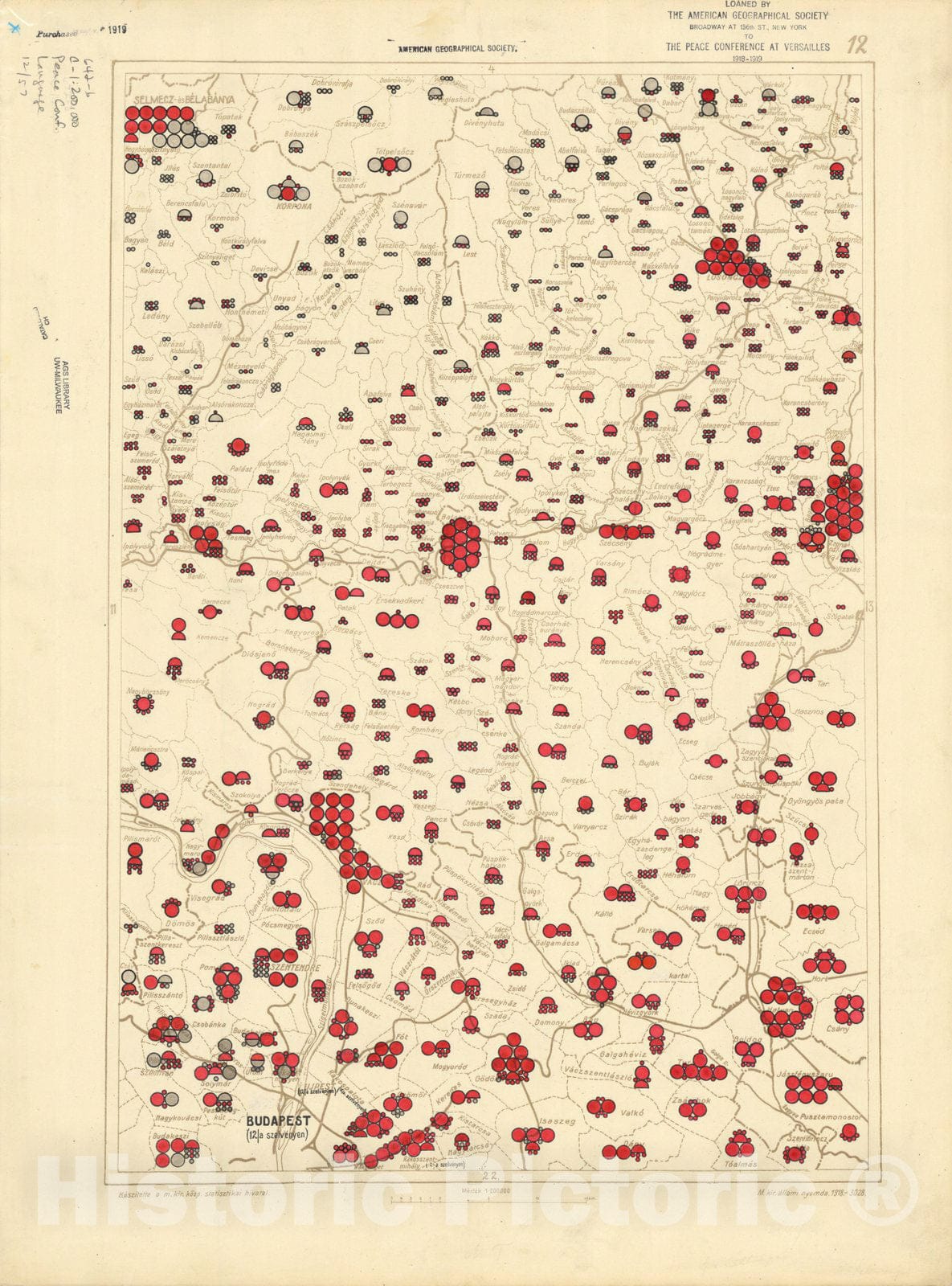 Map : The communes of Hungary showing the persons speaking Hungarian 1918 2, Antique Vintage Reproduction