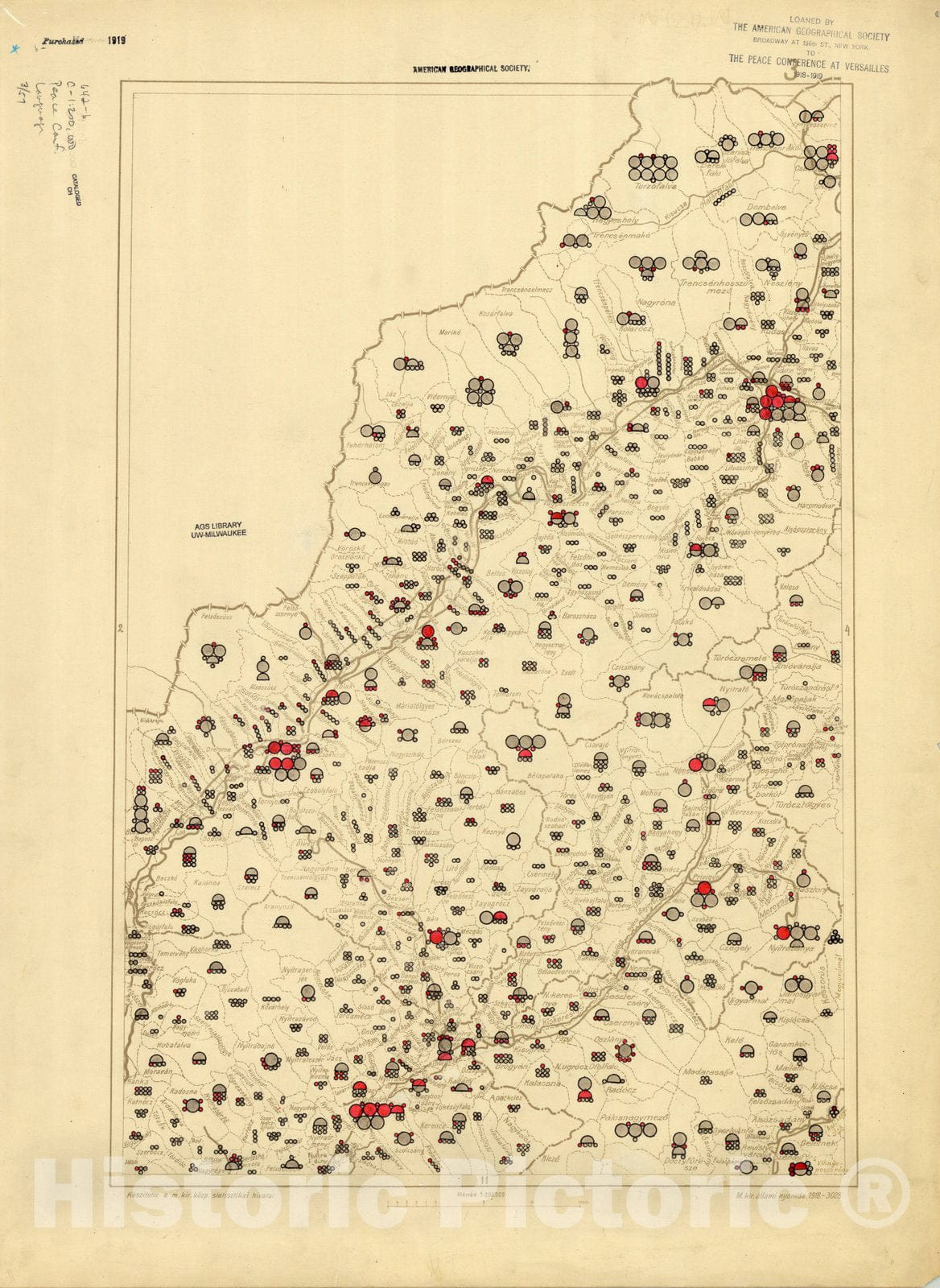 Map : The communes of Hungary showing the persons speaking Hungarian 1918 23, Antique Vintage Reproduction