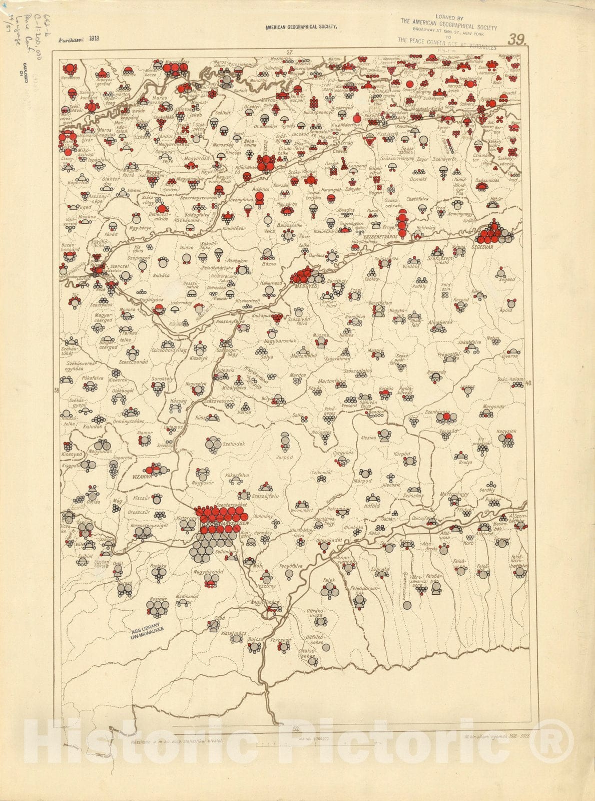 Map : The communes of Hungary showing the persons speaking Hungarian 1918 30, Antique Vintage Reproduction