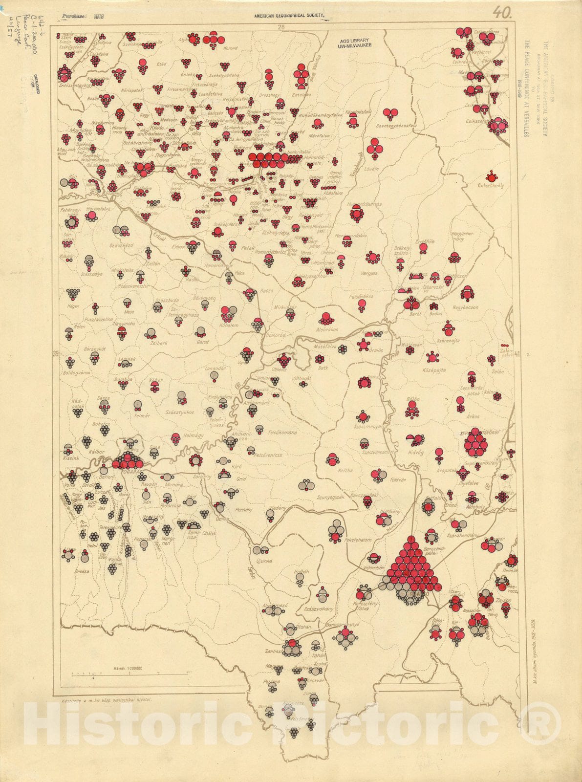 Map : The communes of Hungary showing the persons speaking Hungarian 1918 31, Antique Vintage Reproduction
