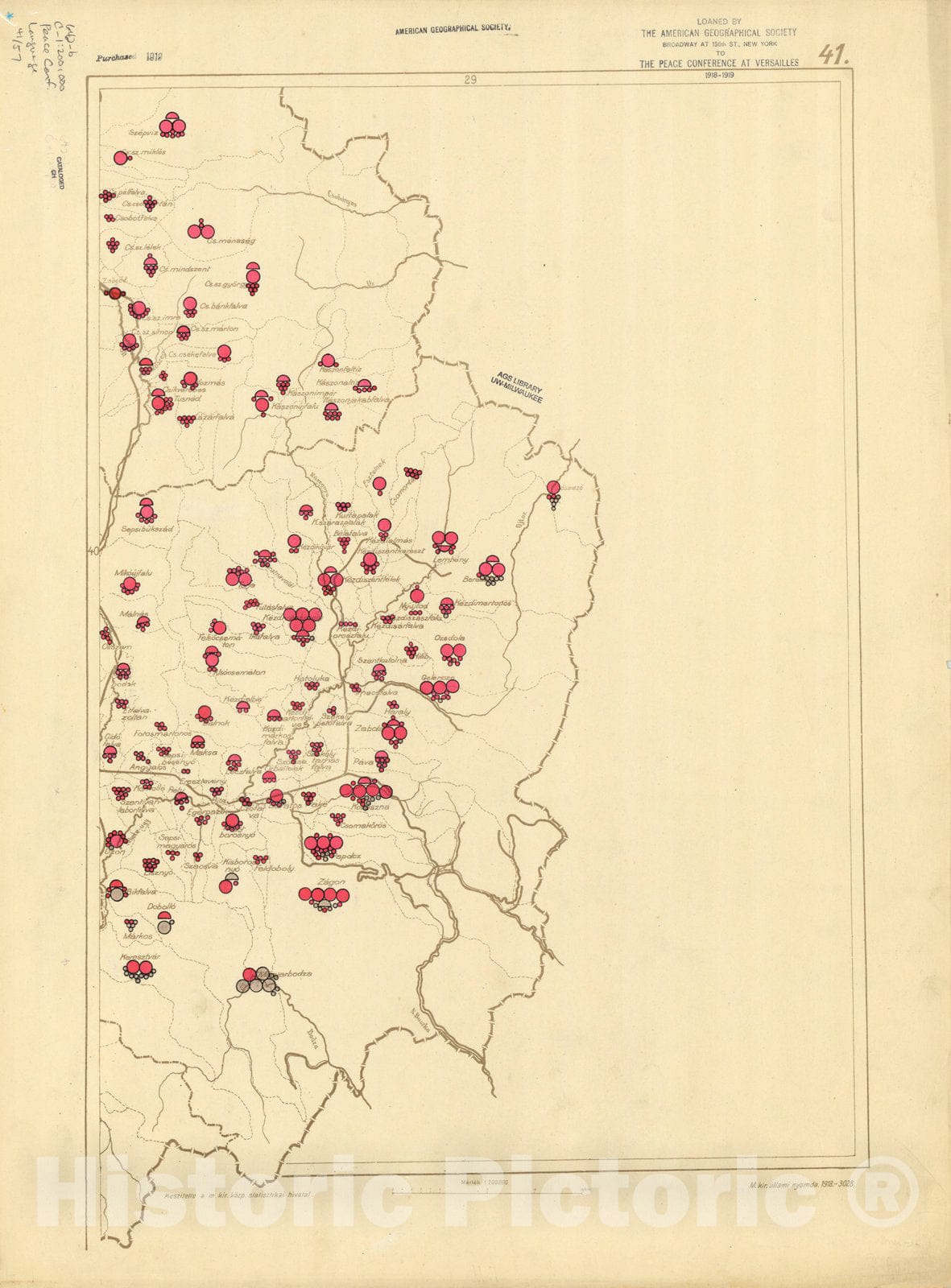 Map : The communes of Hungary showing the persons speaking Hungarian 1918 32, Antique Vintage Reproduction