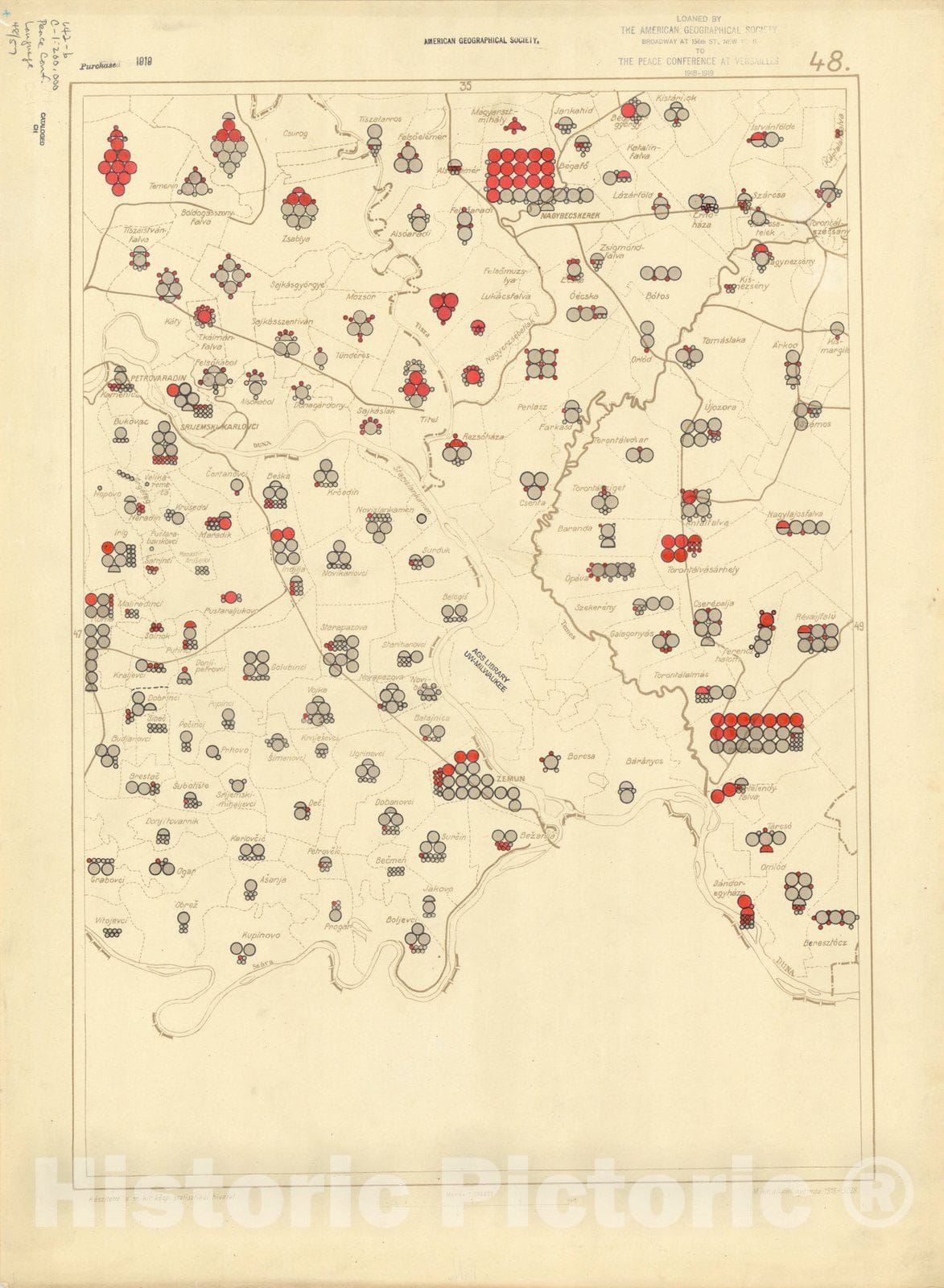 • .Map : The communes of Hungary showing the persons speaking Hungarian 1918 35, Antique Vintage Reproduction