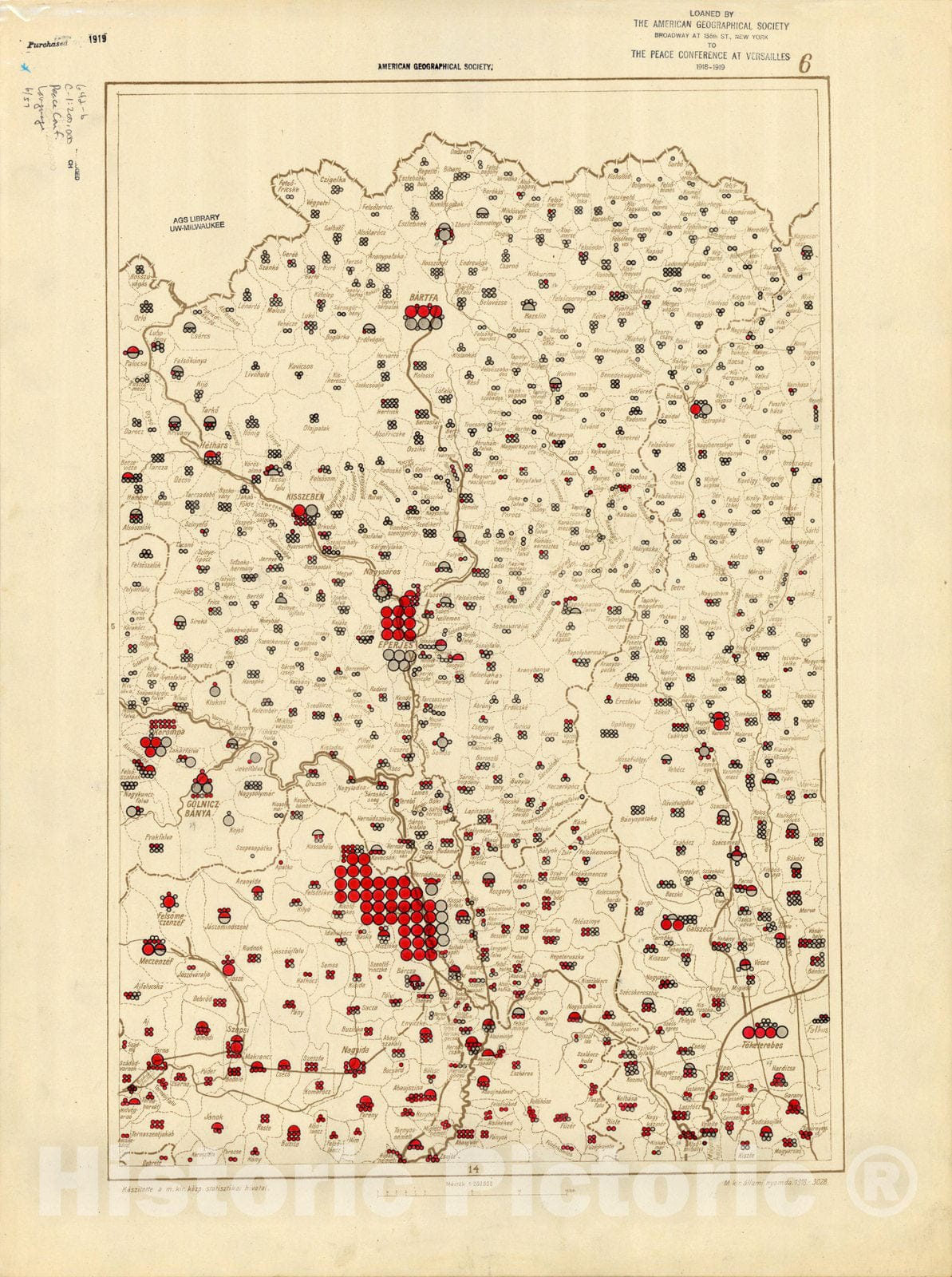 Map : The communes of Hungary showing the persons speaking Hungarian 1918 40, Antique Vintage Reproduction