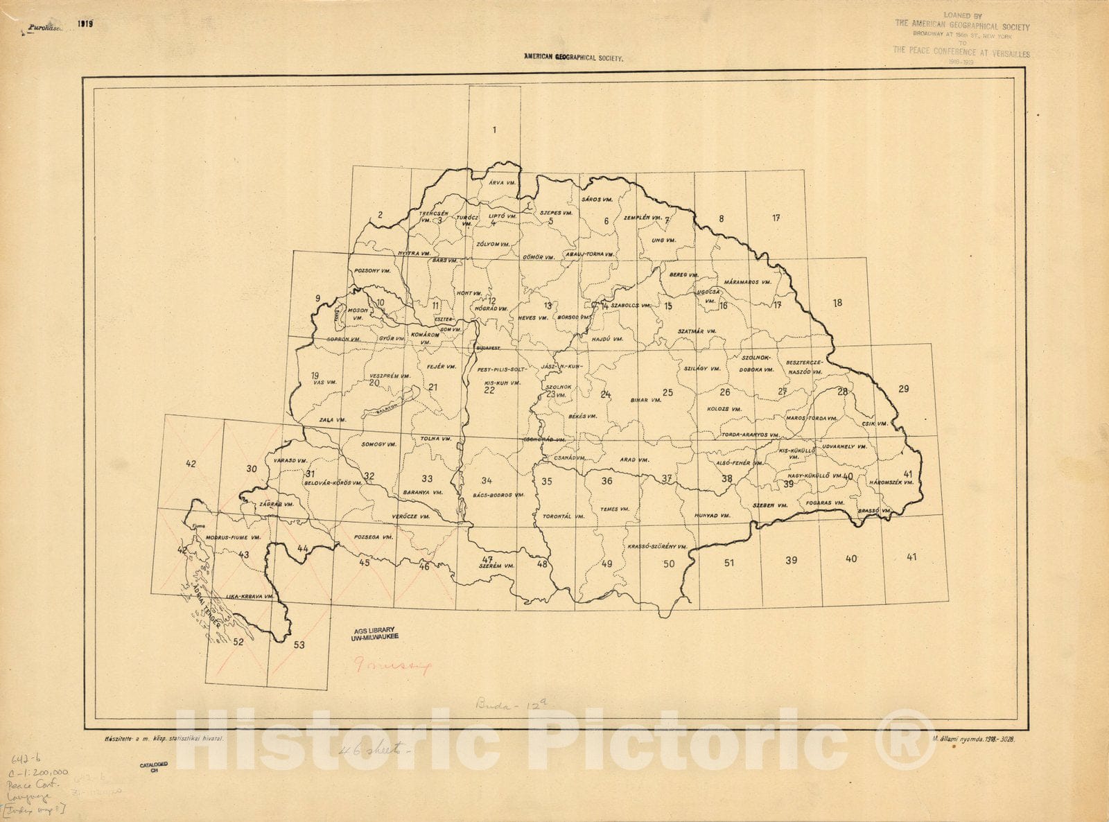 Map : The communes of Hungary showing the persons speaking Hungarian 1918 44, Antique Vintage Reproduction