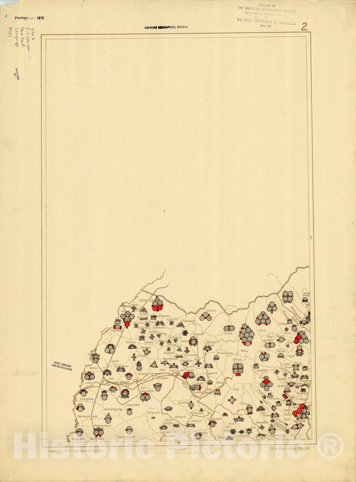 Map : The communes of Hungary showing the persons speaking Hungarian 1918 12, Antique Vintage Reproduction