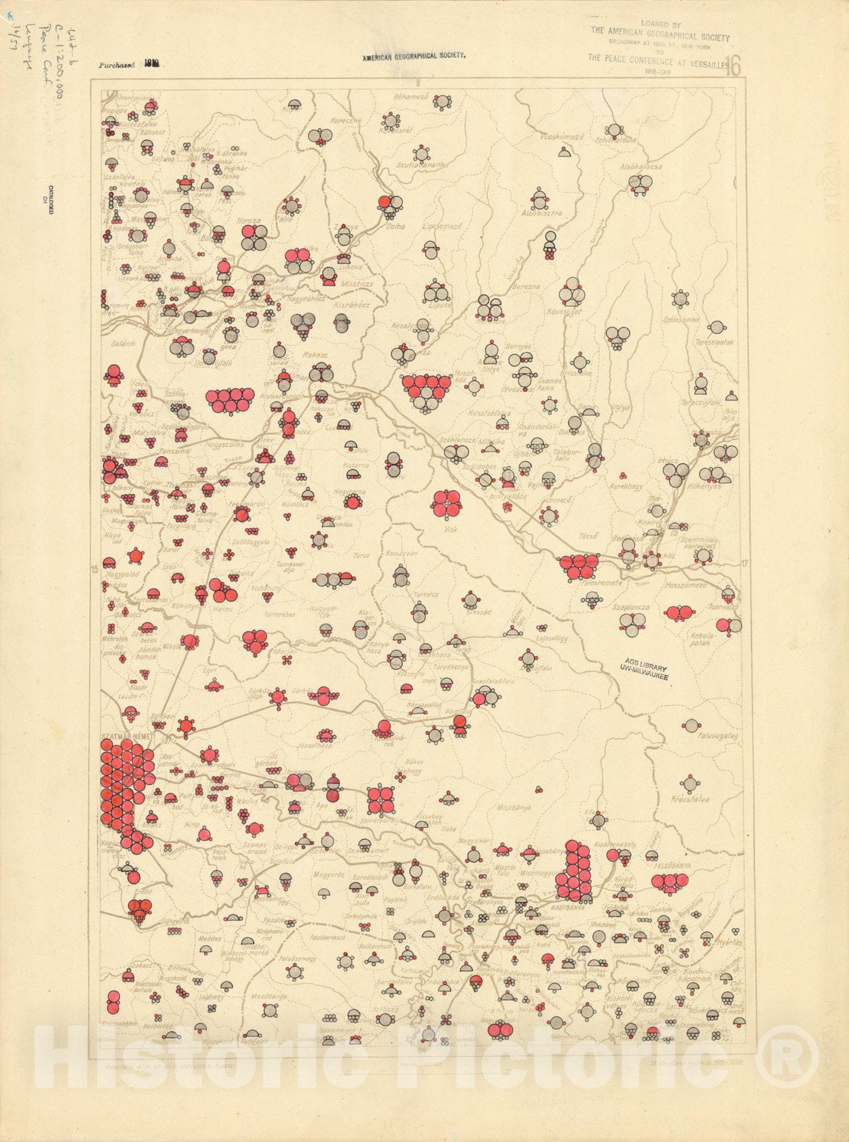 Map : The communes of Hungary showing the persons speaking Hungarian 1918 7, Antique Vintage Reproduction