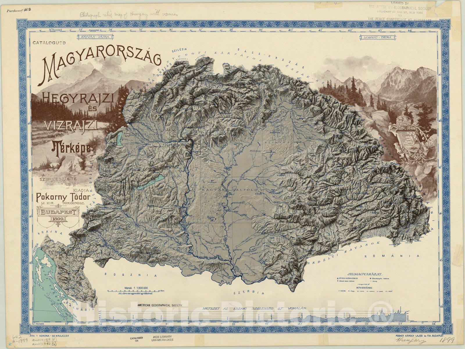 Magyarorszag hegyrajzi es vizrajzi terkepe / szerkesztette es Kiadja Pokorny Todor, M. Kir, terkepesz.