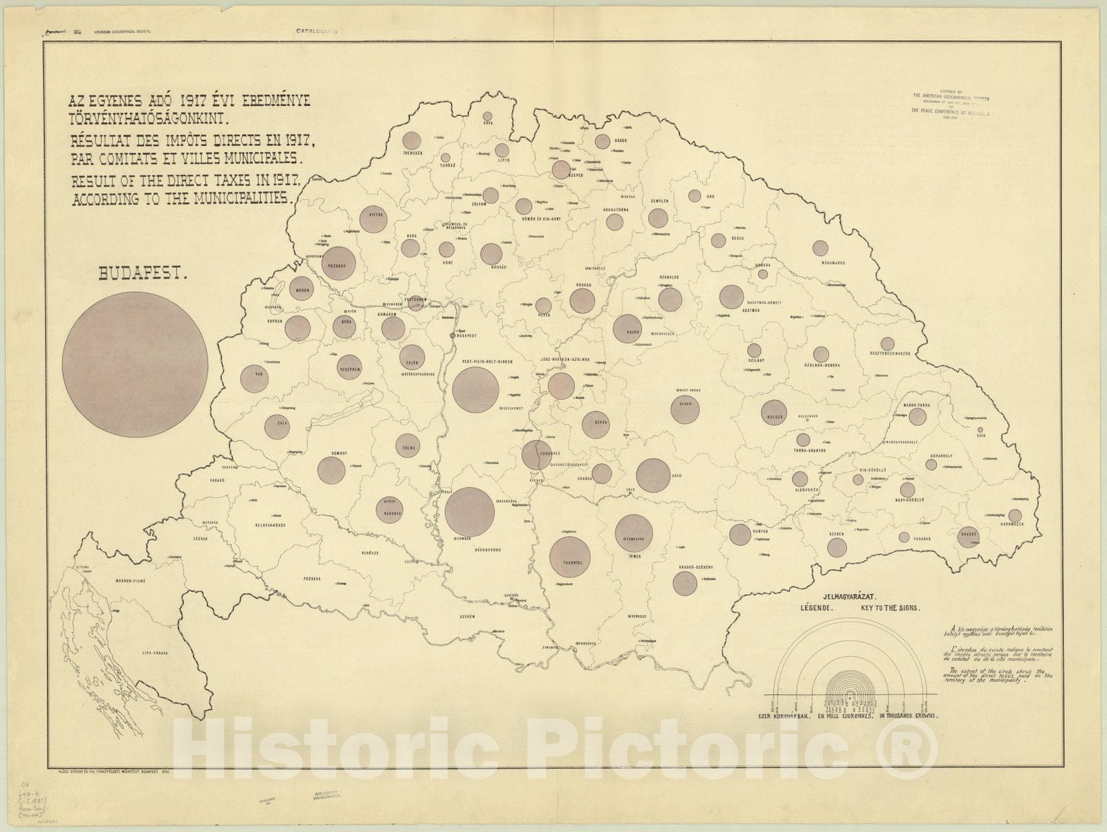 Az Egyenes ado 1917 evi eredmenye torvenyhatosagonkint = Resultat des impo?ts directs en 1917, par comitats et villes municipales = Result of the direct taxes in 1917, according to the municipalities.