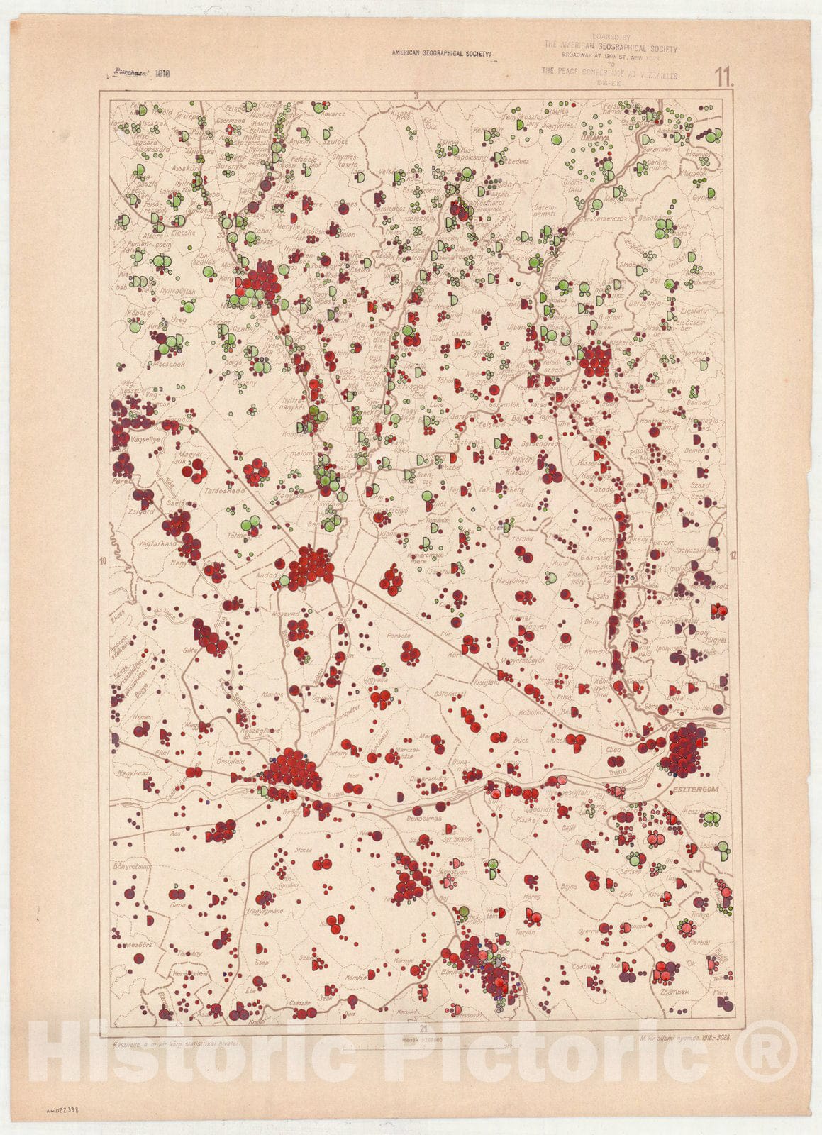 Map : Hungary 1918 9, Ethnographical map of Hungary, Carte ethnographiqe de la Hongrie , Antique Vintage Reproduction