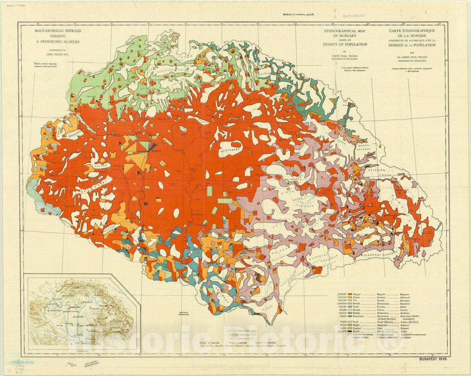 Magyarorszag neprajzi terkepe a nepsuruseg alapjan = / szerkesztette Grof Teleki Pal = Ethnographical map of Hungary based on the density of population / by Count Paul Teleki = Carte ethnographique de la Hongrie construite en la accordance avec la dens