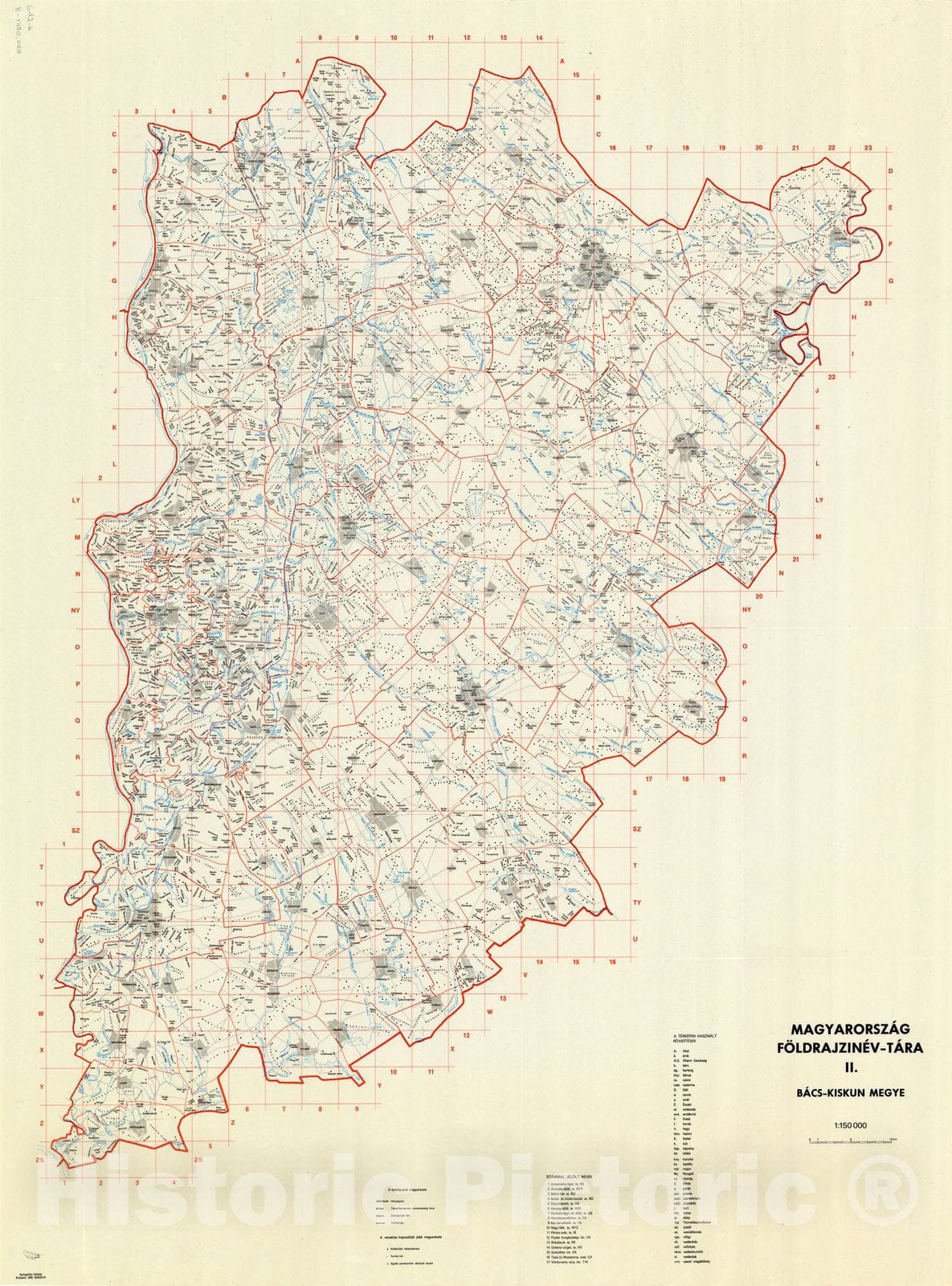 Map : Hungary 1980, Magyarorszag Foldrajzinev-Tara II. Bacs-Kiskun Megye, Antique Vintage Reproduction