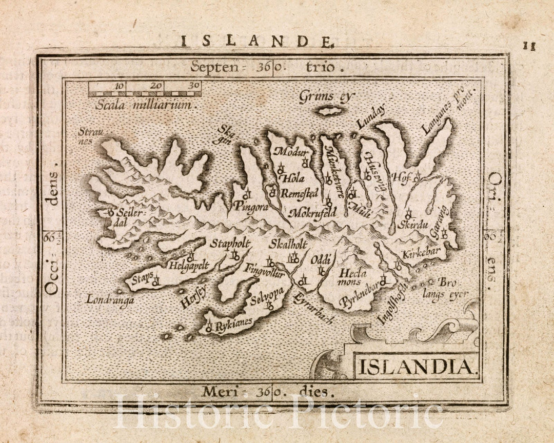 Historic 1603 Map - Islandia. - Norway - Iceland - Abraham Ortelius His Epitome Of The Theater Of The Worlde. - Vintage Wall Art
