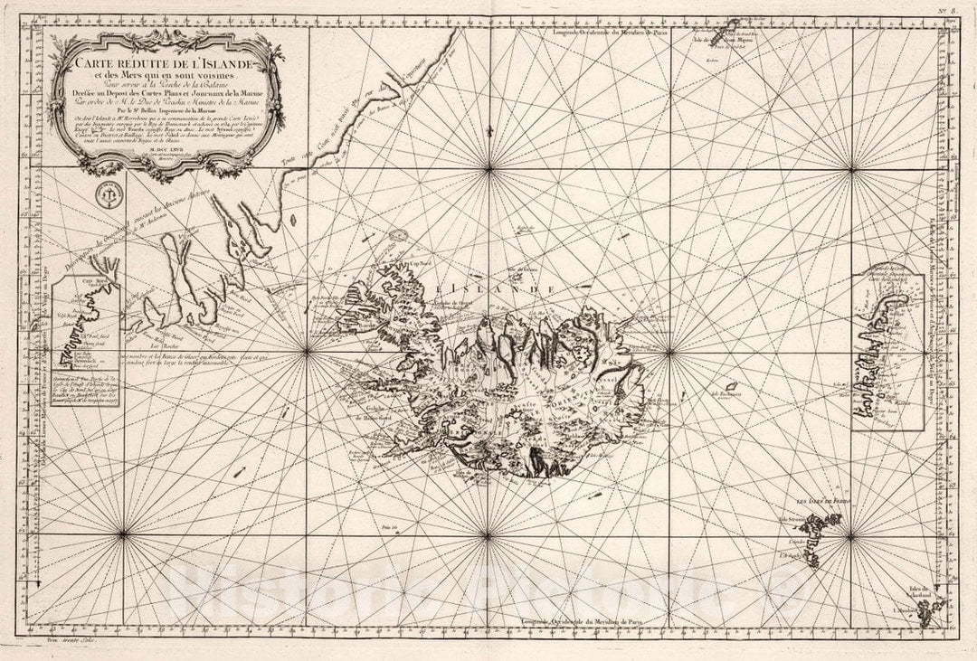 Historic Map : Iceland, North Atlantic Carte Reduite de l'Islande, 1767 Chart , Vintage Wall Art