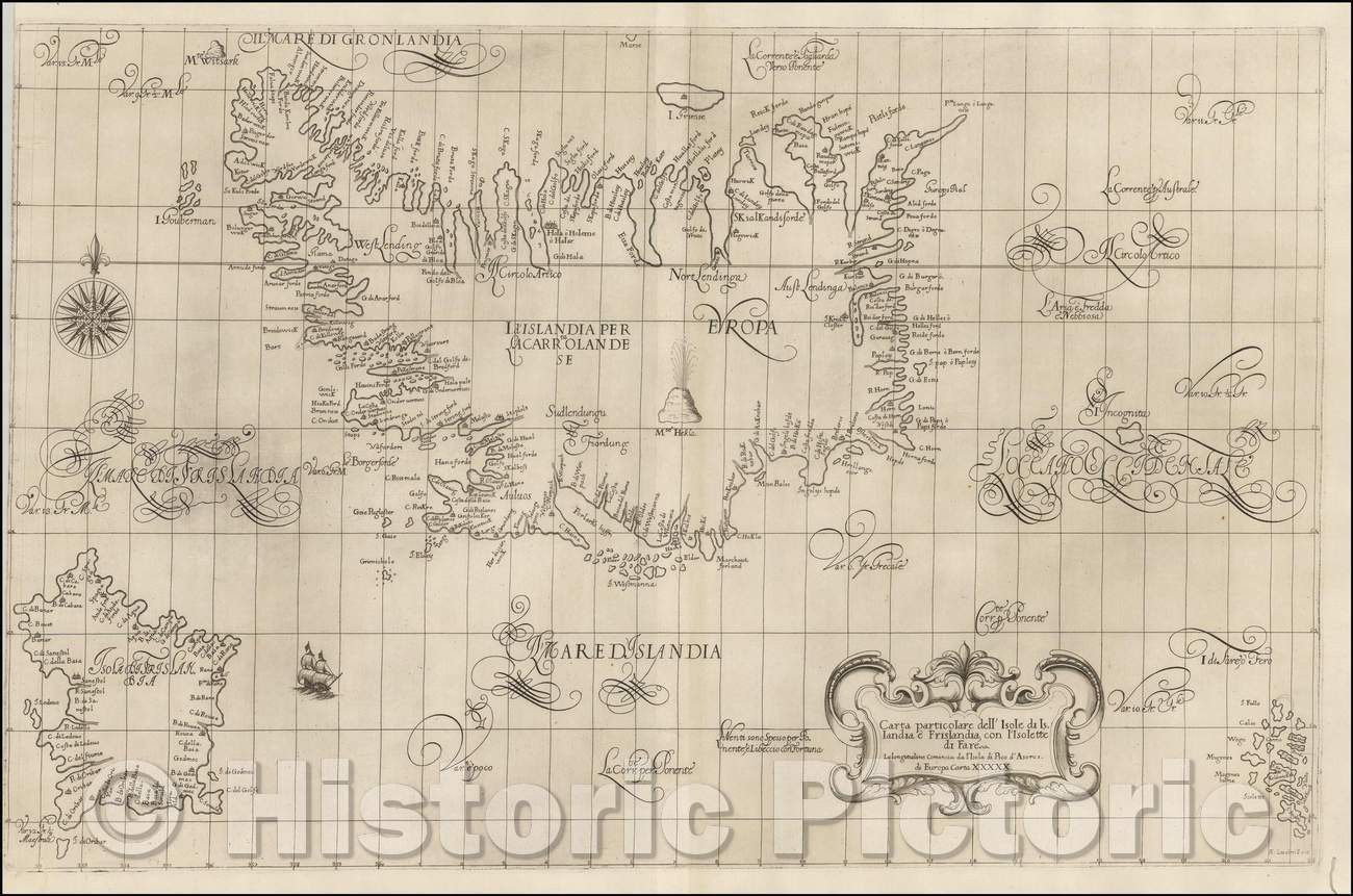 Historic Map - Carta particolare dell' Isole di Islandia e. Frislandia, con Isolette di :: Robert Dudley's of Iceland, Frisland, part of the Faroe Islands, 1646 - Vintage Wall Art