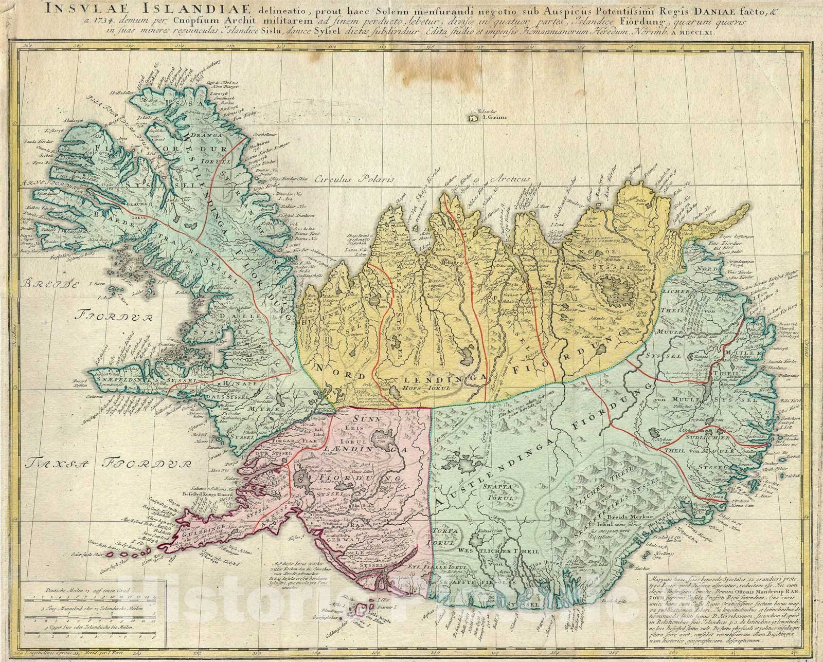 Historic Map : Iceland 'Insulae Islandiae', Homann Heirs, 1761, Vintage Wall Art