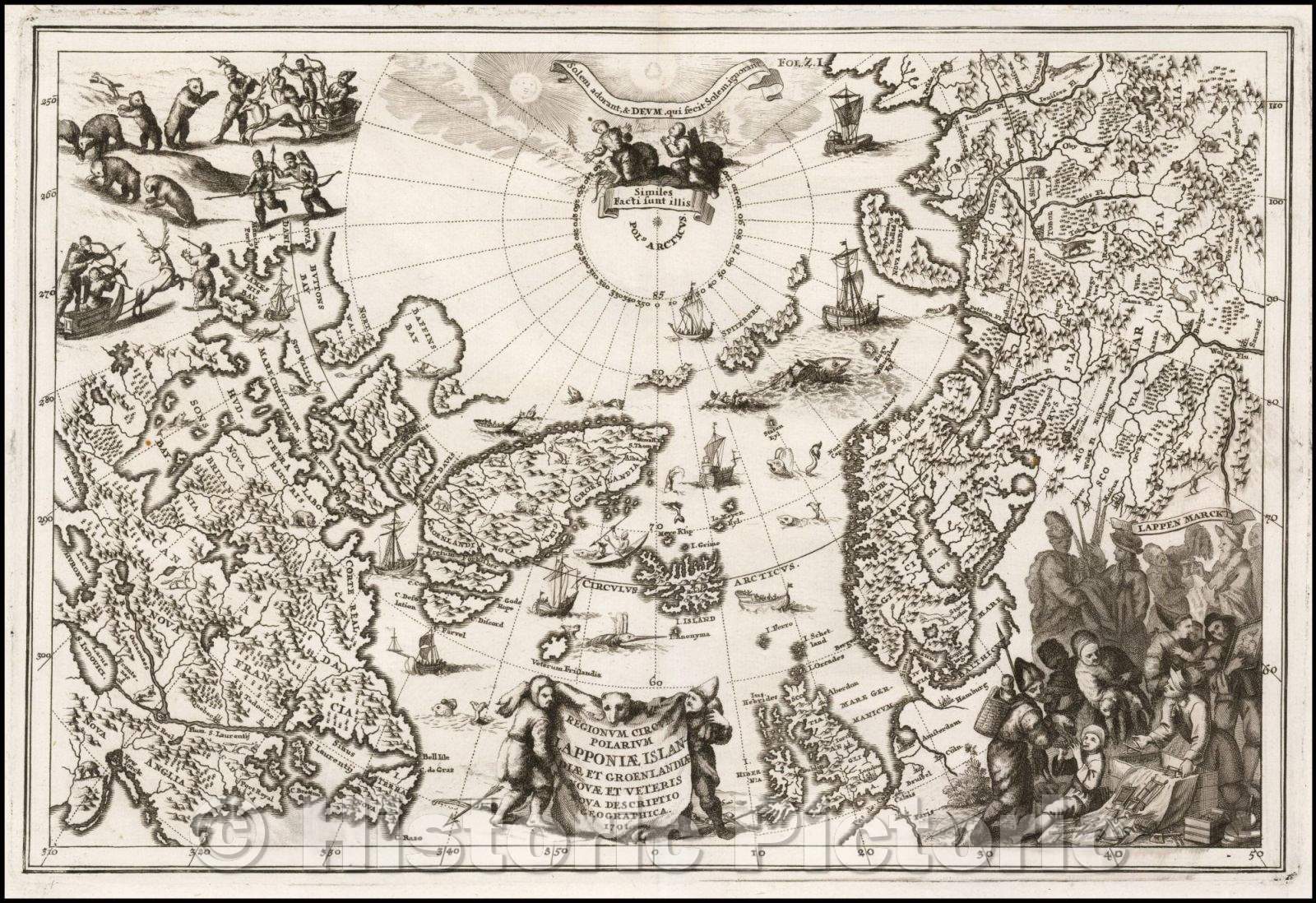 Historic Map - Regionum Circum Polarium Lapponiae Islandiae et Groenlandiae Novae et Vete :: Polarium Lapland region around Iceland and Groenlandiae, 1701 - Vintage Wall Art