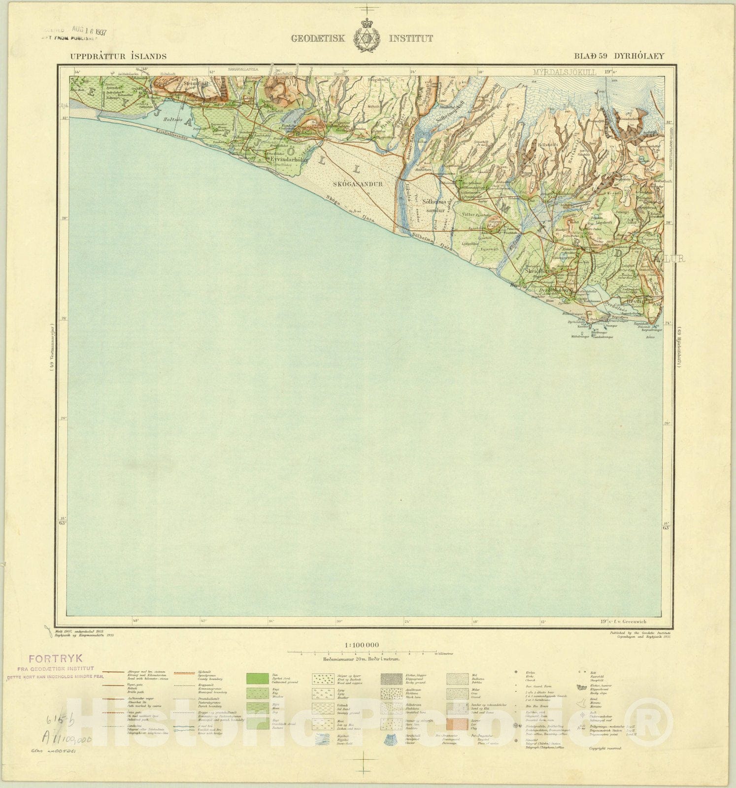 Map : Iceland 1935, Uppdrattur Islands , Antique Vintage Reproduction