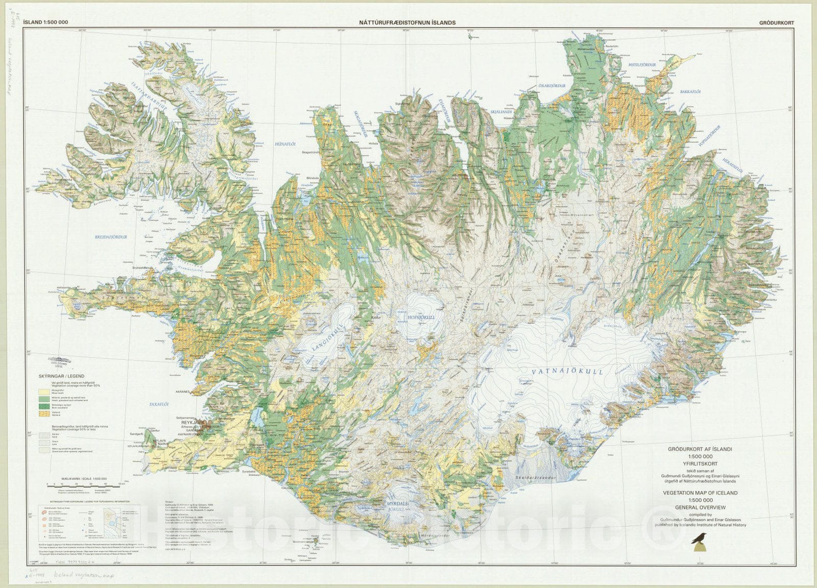 Gro??rkort af Islandi 1:500 000, yfirlitskort / teki/xF0 saman af Gu/xF0mundi Gu/xF0jonssyni og Einari Gislasyni ; tolvuverkstjorn og kortager/xF0--Hans H. Hansen = Vegetation map of Iceland 1:500 000, general overview / compiled by Gu/xF0mundur Gu/xF0