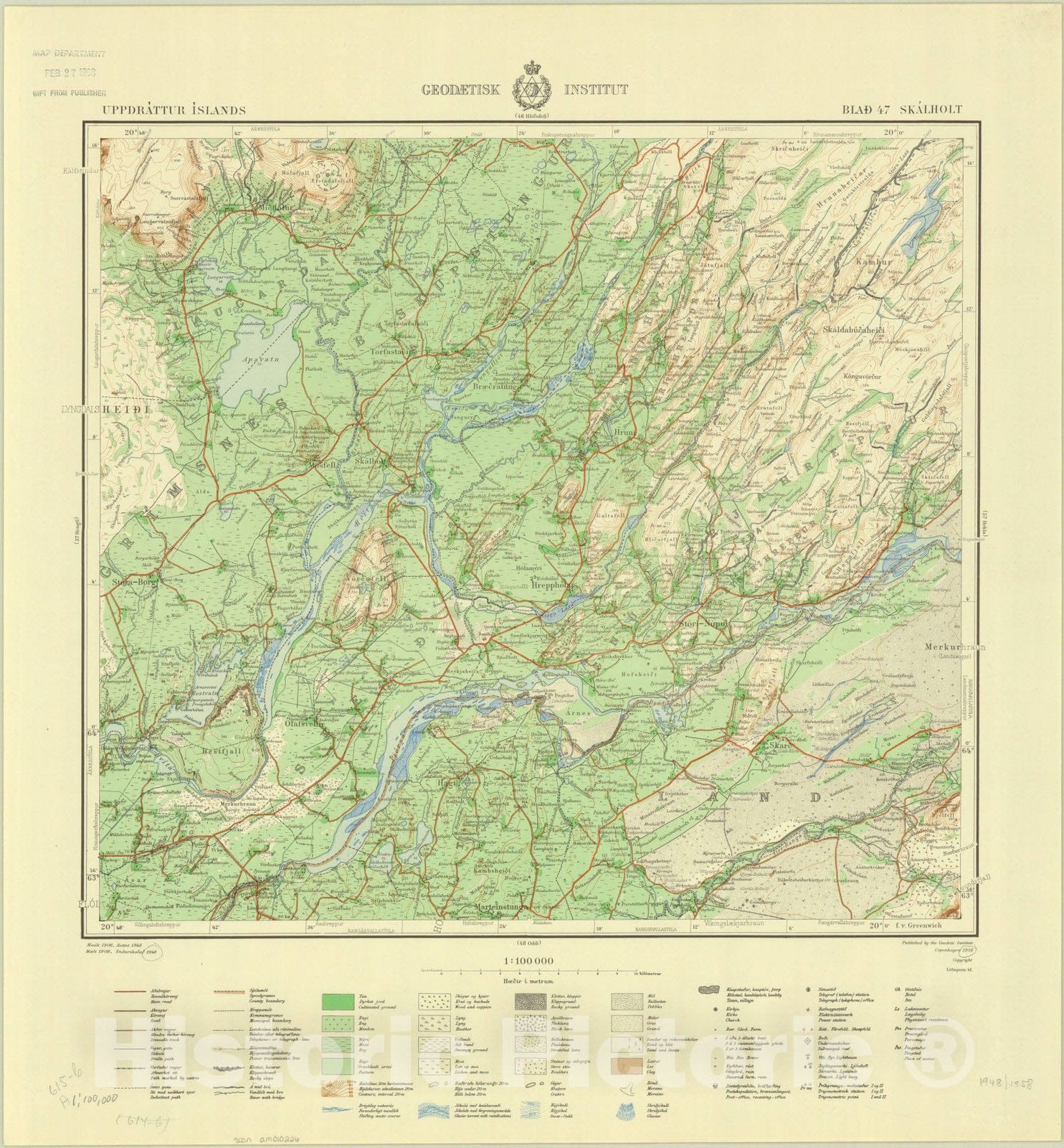 Map : Skalholt, Iceland 1948, Uppdrattur Islands Blad 47 Skalholt, Antique Vintage Reproduction