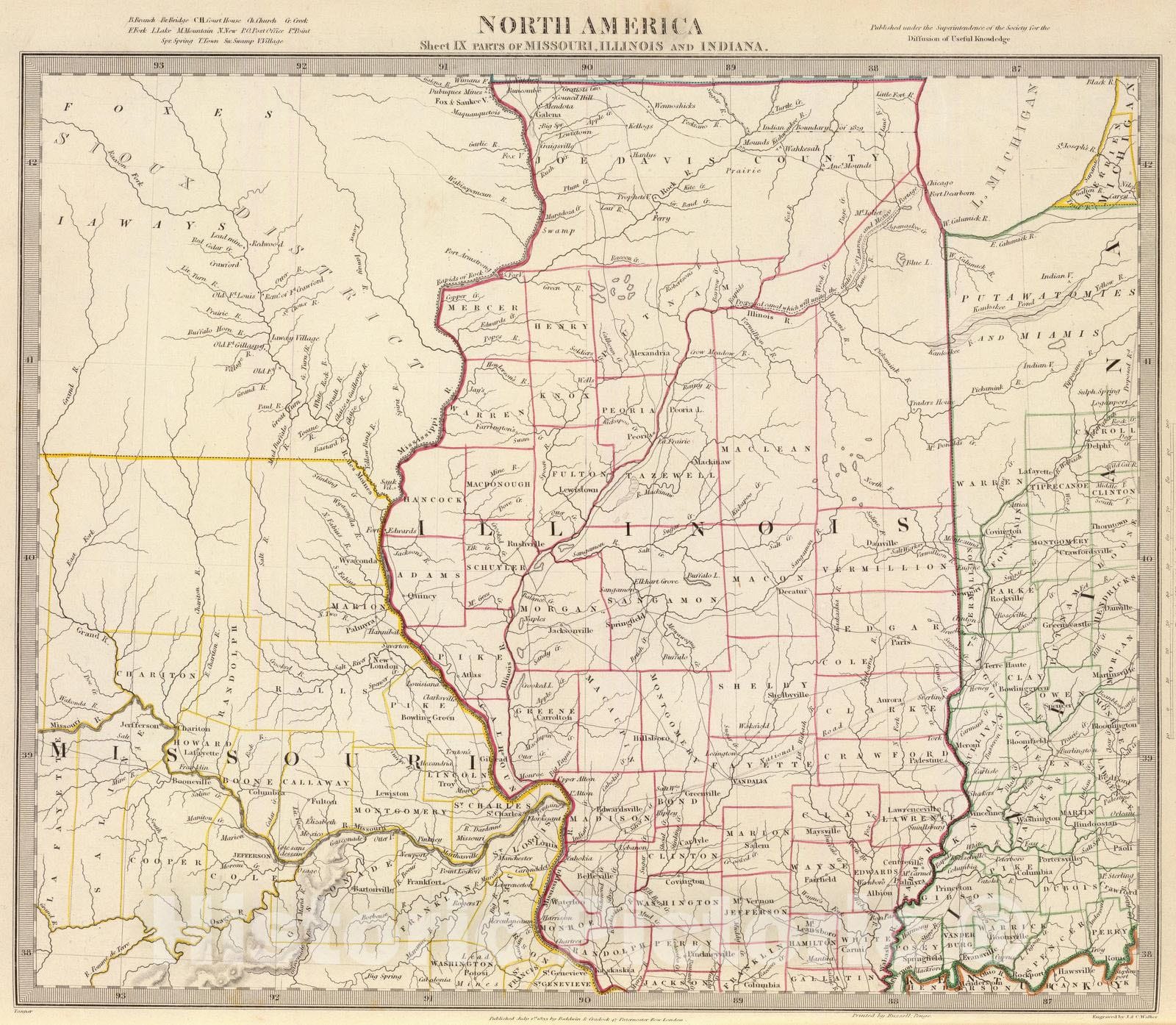 Historic Map : United States, Illinois, 1833 Missouri, Ill, Ind. , Vintage Wall Art