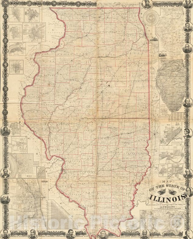 Historical Map, 1863 Map of The State of Illinois, Vintage Wall Art