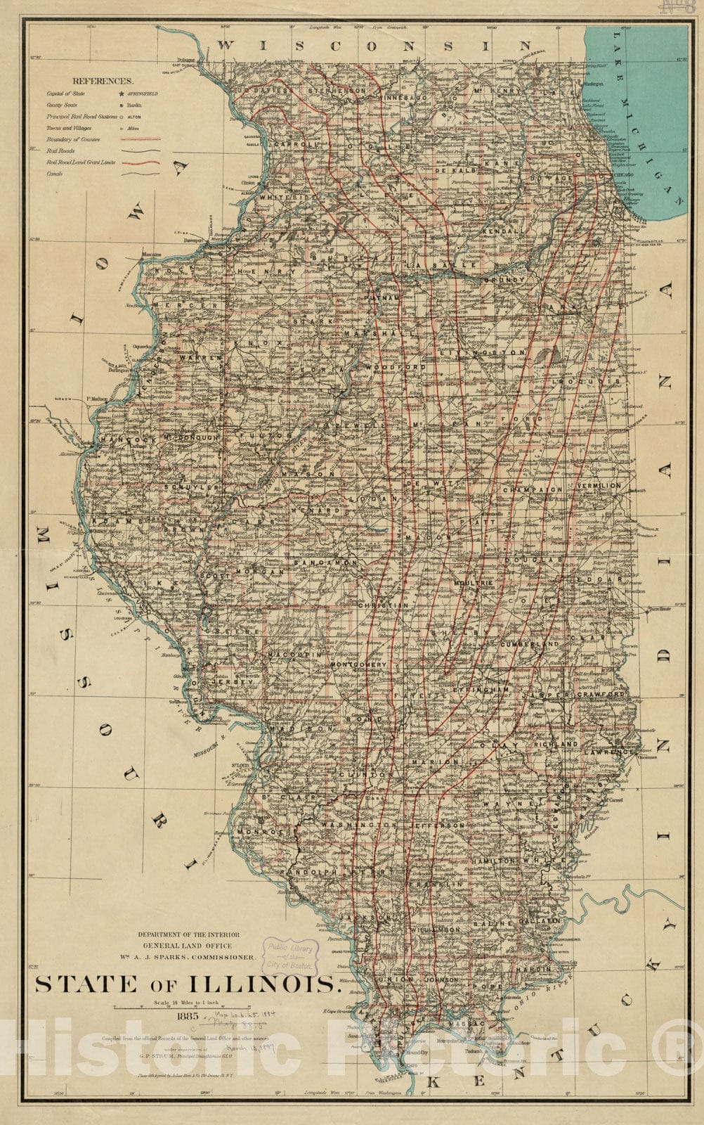 Historical Map, 1885 State of Illinois, Vintage Wall Art
