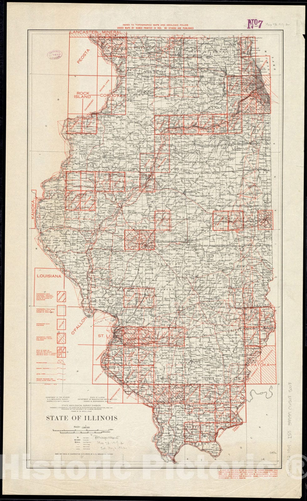 • .Historical Map, 1917-1919 State of Illinois, Vintage Wall Art
